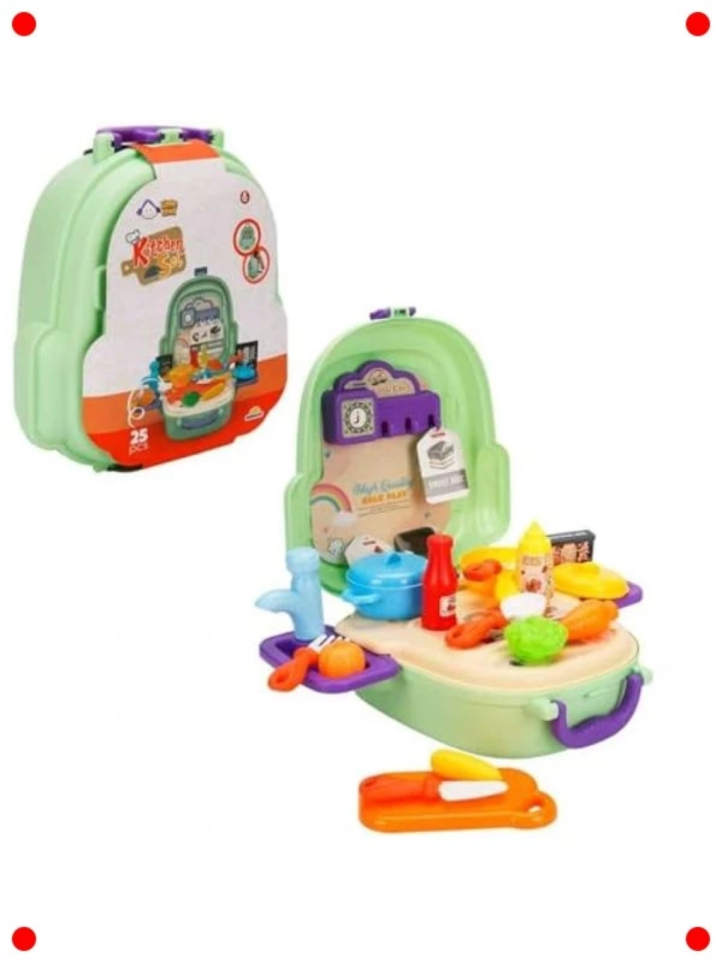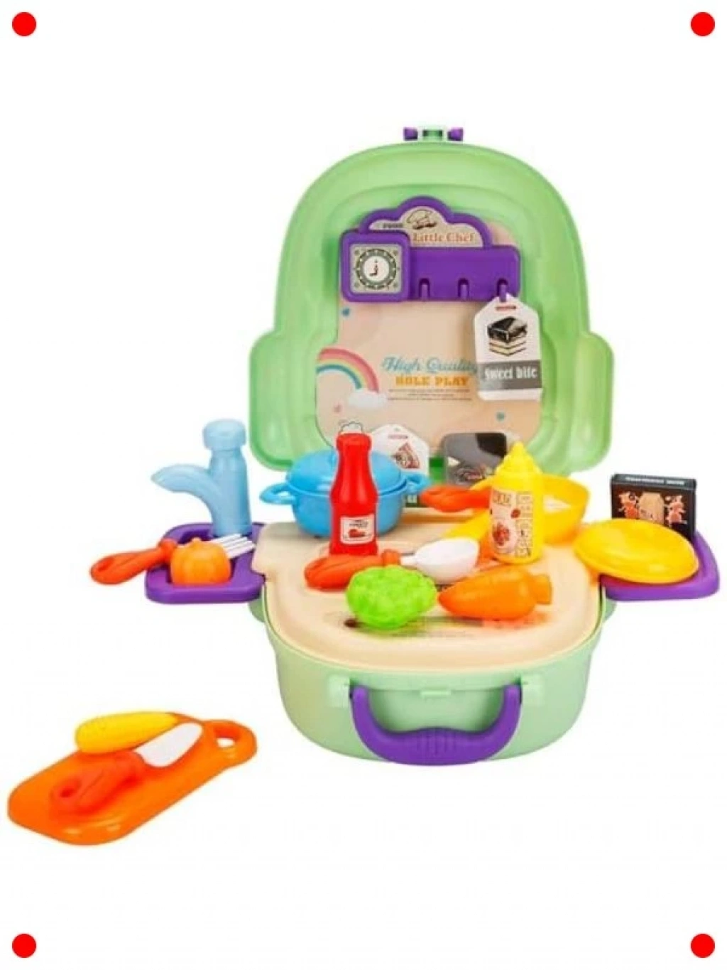 Minik şeflerin mutfak hayallerini gerçeğe dönüştürecek, sırt çantalı taşınabilir mutfak oyun seti. Bu eğlenceli set, çocukların hayal gücünü ve rol yapma becerilerini geliştirmesine yardımcı olur. Çeşitli mutfak aksesuarları ve gereçleri ile birlikte gelir, böylece çocuklar kendi lezzetli yemeklerini "pişirme" keyfini yaşar. Pratik sırt çantası tasarımı sayesinde tüm parçalar kolayca taşınabilir ve saklanabilir, böylece oyun her yere taşınabilir. Çocukların el-göz koordinasyonunu ve sosyal becerilerini destekleyen eğitici bir oyuncak.
