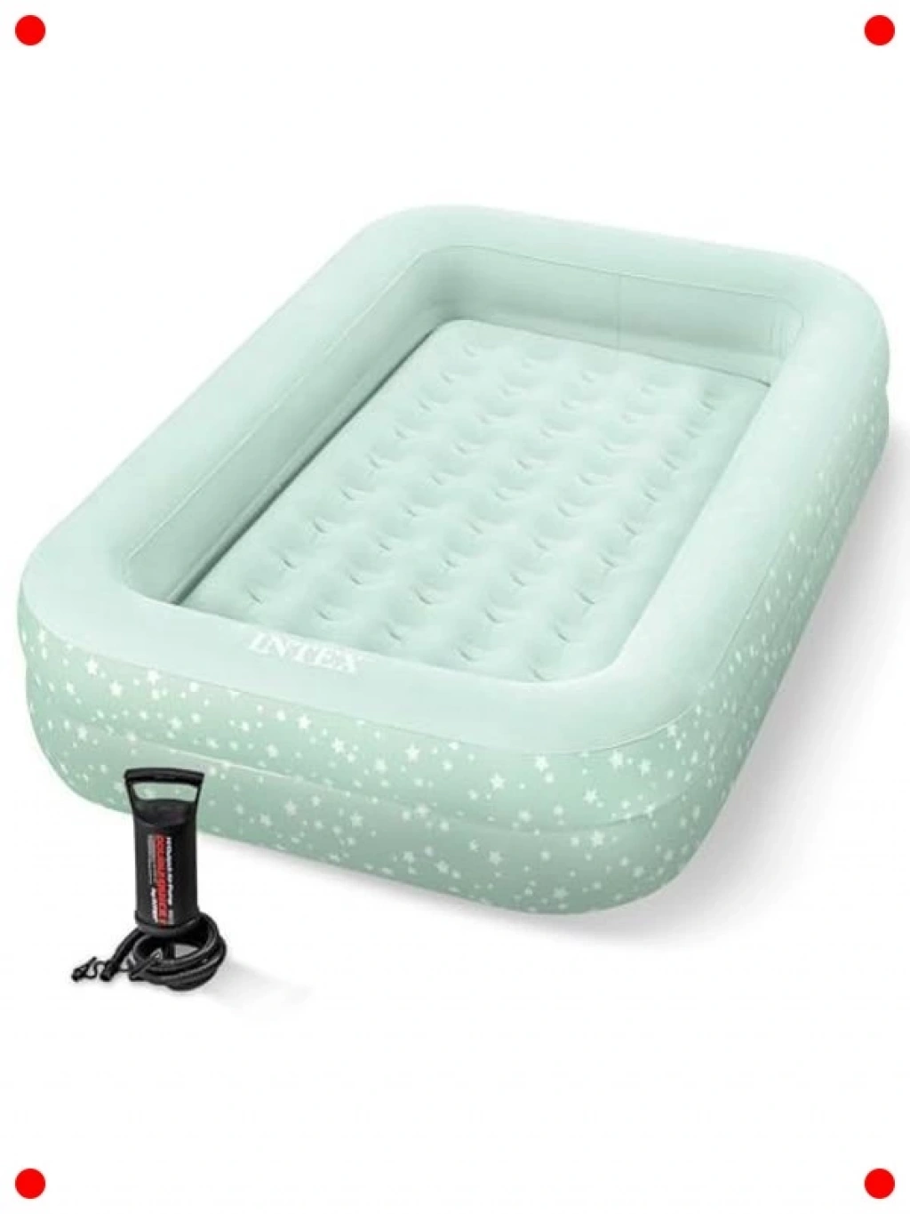 Çocuklarınız için kamp, misafirlik veya seyahatlerde maksimum konfor ve güvenliği bir arada sunan şişme yatak seti. Kolayca şişirilip indirilebilen bu yatak, yerden tasarruf sağlayan kompakt tasarımıyla her yere rahatlıkla taşınabilir. Yatağın etrafındaki yükseltilmiş yan duvarlar, çocuğunuzun uykusu sırasında düşmesini engelleyerek ekstra güvenlik sağlar. Yumuşak yüzeyi ve ergonomik yapısı sayesinde minik misafirleriniz veya küçük gezginleriniz evlerindeki kadar rahat bir uyku deneyimi yaşar. Dayanıklı malzemesiyle uzun ömürlü kullanım sunar.