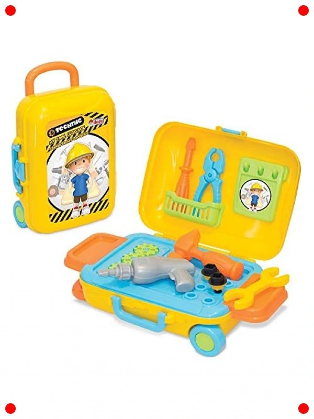 Küçük tamirciler iş başında! Bu eğlenceli çocuk tamir seti, miniklerin rol yapma becerilerini liştirmesine ve temel aletleri tanımalarına olanak tanır. Portatif bavul tasarımı sesinde tüm aletler düzenli bir şekilde saklanır ve her yere kolca taşınabilir. Çocukların el-göz koordinasyonunu, ince motor becerilerini ve problem çözme yeteneklerini liştirir, nı zamanda yaratıcı oyun senaryoları oluşturmalarına ilham verir. Güvenli ve danıklı plastikten üretilmiş olan aletler, çocuk sağlığına zararlı hiçbir madde içermez. leceğin mühendisleri ve ustaları için harika bir başlangıçtır.