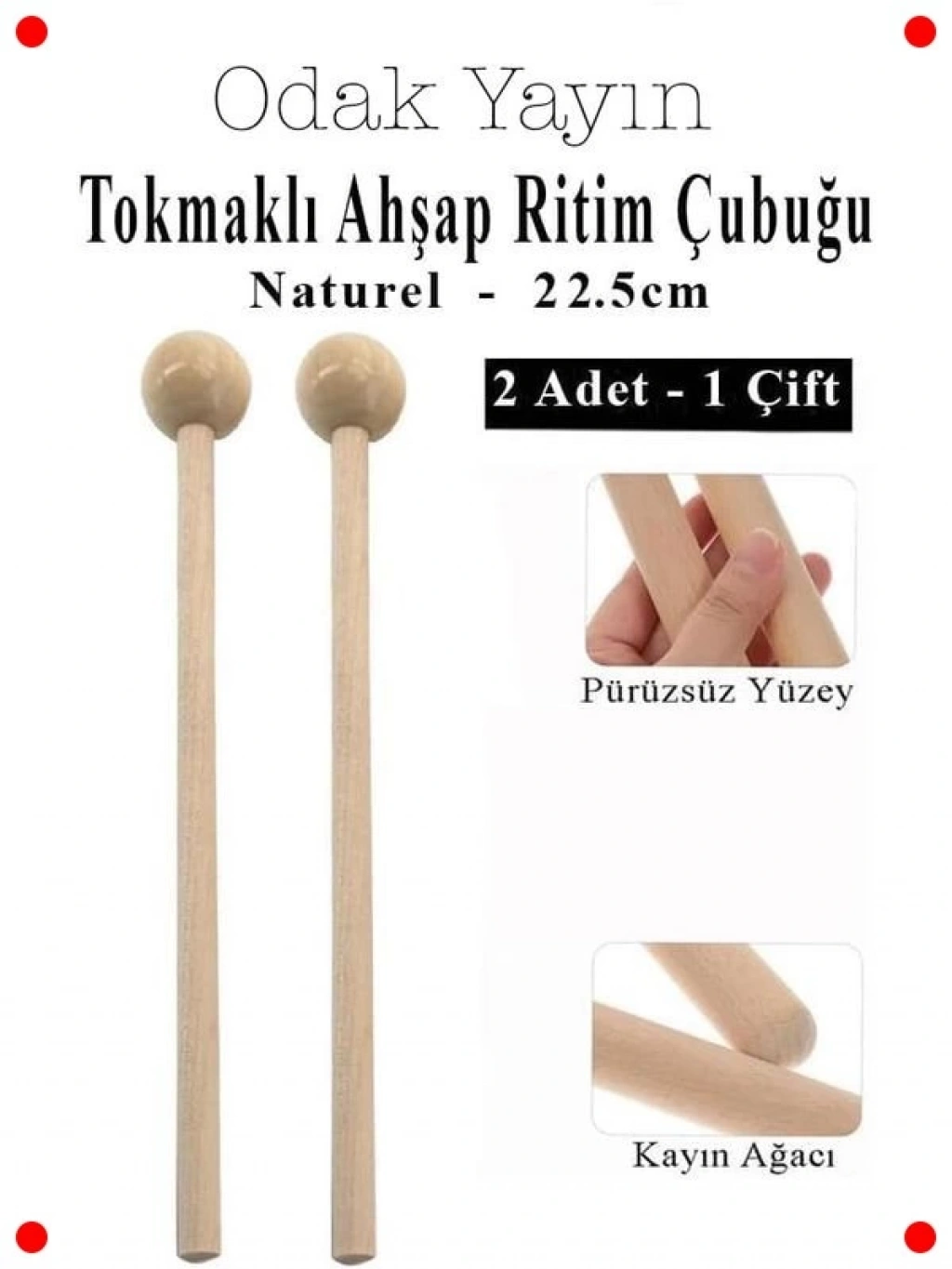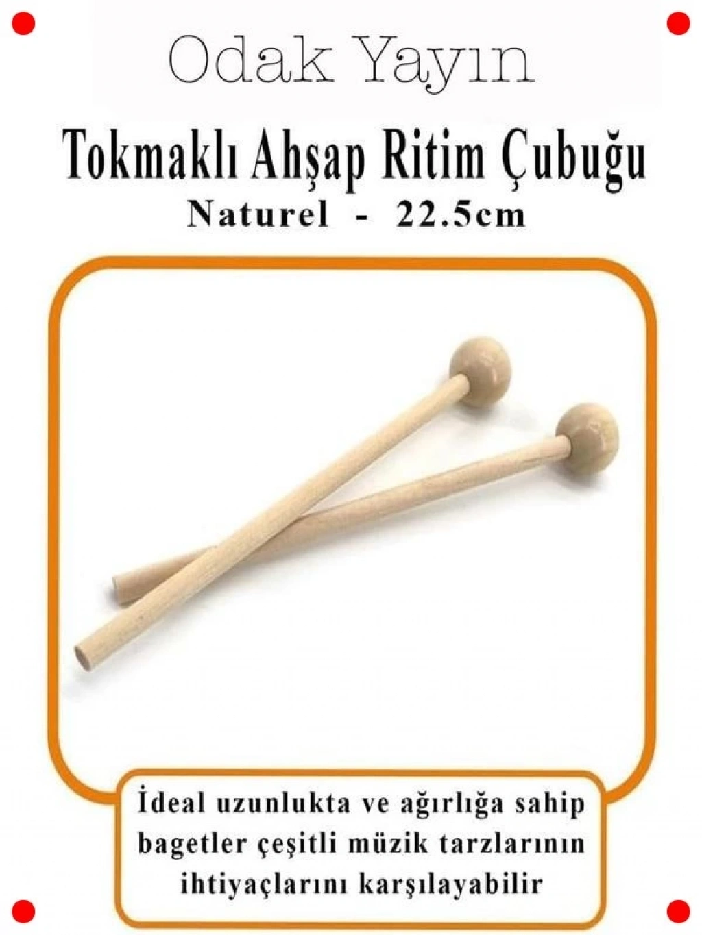Çocukların ritim duygusunu ve müzikal yeteneklerini eğlenceli bir şekilde geliştirmek için ideal olan ahşap ritim çubukları. Bu çift çubuk, doğal ve sağlam ahşap malzemeden üretilmiş olup, çocukların güvenle kullanabileceği bir yapıya sahiptir. 22.5 cm uzunluğu ve 2 cm kalınlığı ile minik eller için mükemmel bir kavrama sunar. Okul öncesi eğitimde, müzik derslerinde veya evdeki yaratıcı oyunlarda kullanılabilir. Ritmik sesler çıkararak çocukların koordinasyon, odaklanma ve işitsel becerilerini destekler. Küçük müzisyenlerin ilk perküsyon enstrümanı için harika bir seçimdir.