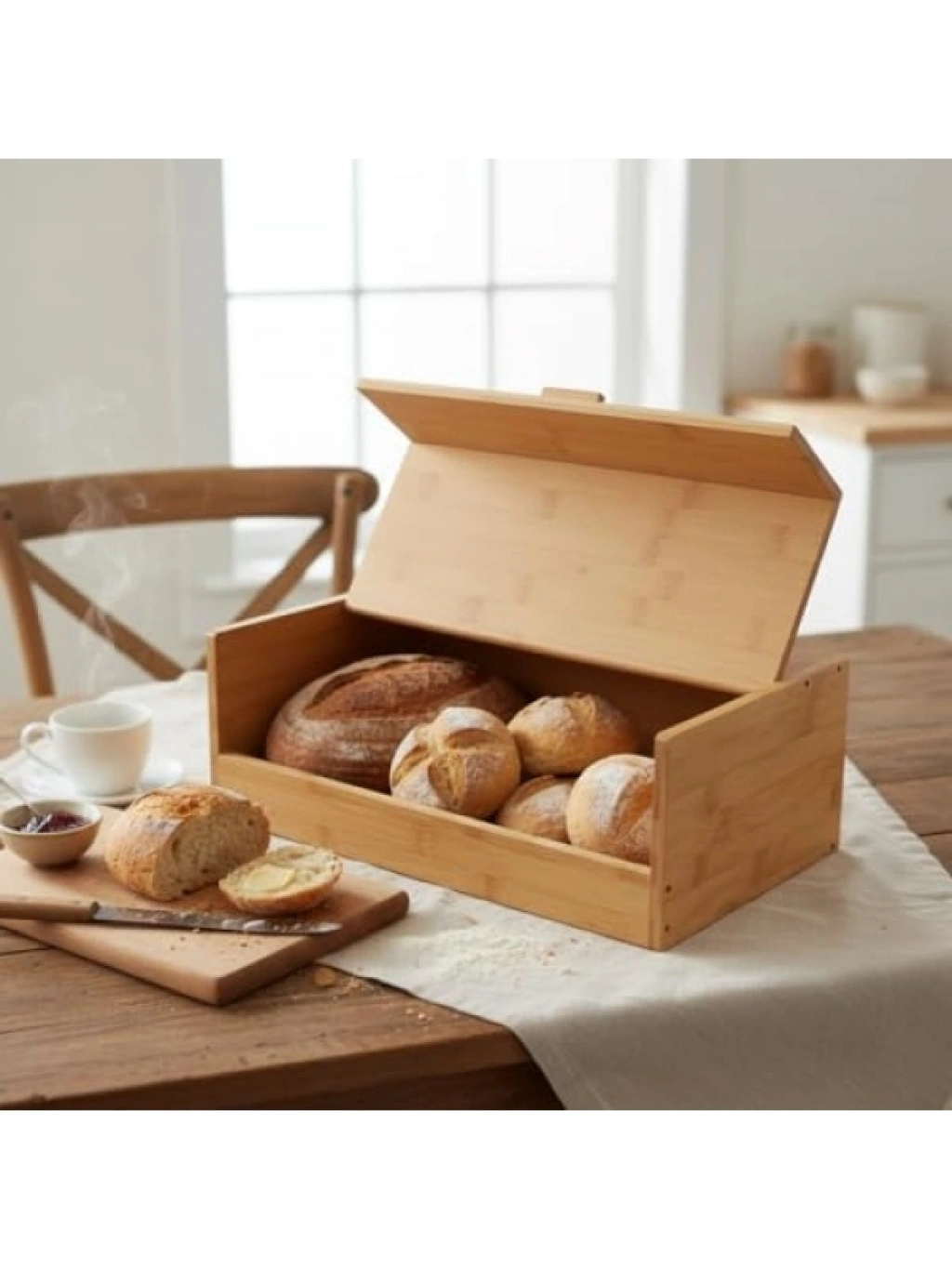 Doğal bambu malzemeden üretilmiş olan bu ekmek kutusu, mutfaklarınıza düzen ve şıklık katacak. 40 cm genişlik, 23 cm derinlik ve 14 cm yükseklik ölçüleri ile geniş hacim sunar. Ekmeklerinizi taze tutarken, diğer unlu mamullerinizi de düzenli bir şekilde saklar. Sağlığa zararlı maddeler içermez ve pratik bir kullanım sağlar.