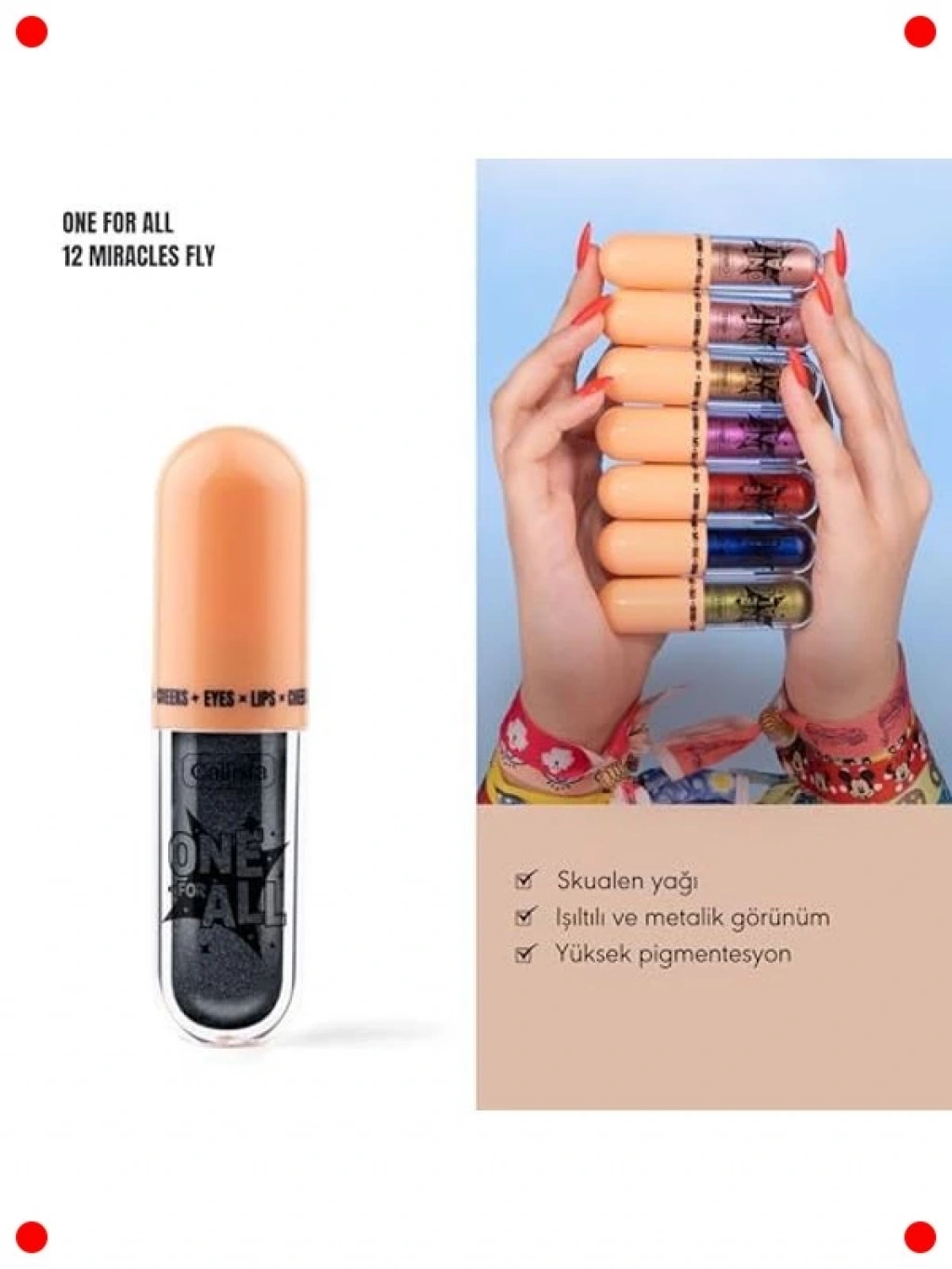 Makyaj rutininizi basitleştirmek ve yaratıcılığınızı ortaya çıkarmak için tasarlanmış bu çok amaçlı likit ürün, tek bir şişede gözleriniz, dudaklarınız ve yanaklarınız için renk sunar. Hafif ve kolay dağılan formülü sayesinde zahmetsizce uygulanır ve istenilen yoğunlukta bir renk sağlar. Uzun süre kalıcı özelliği ile gün boyu taze ve canlı görünmenizi sağlar. Seyahatlerde veya hızlı makyaj yapmanız gereken anlarda ideal bir çözüm sunar. Çeşitli makyaj görünümleri yaratmak için harika bir üründür, size pratiklik ve zarafet katar.