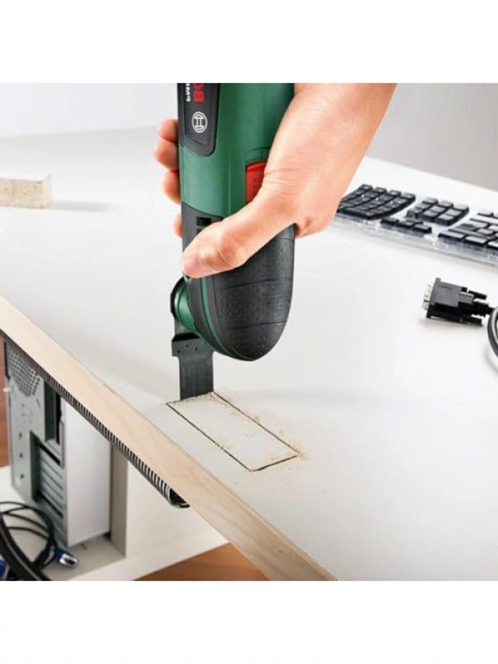 Güçlü ve kompakt tasarımıyla dikkat çeken bu çok fonksiyonlu el aleti, çeşitli işlevleri bir arada sunar. Üniversal vidalı manyetik uç girişi sayesinde, tüm aksesuarların kolayca değiştirilebilmesi sağlanır. 4 kademeli derinlik ayarı ile hassas kesmeler yapabilir, Curved-Tec teknolojisiyle yumuşak daldırma işlemleri gerçekleştirebilirsiniz. Yüksek performans değerleri altında bile korunan sabit elektronik sistemi, işlerinizi kolaylaştırır. Ekstra tutamak ile optimum yönlendirme imkanı sunar.