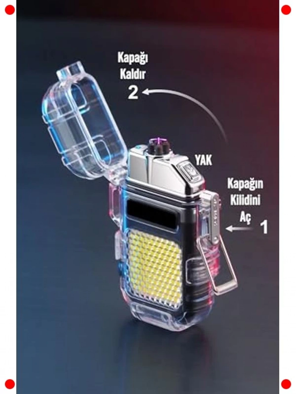 Kamp, doğa yürüyüşleri veya acil durumlar için tasarlanmış bu çok fonksiyonlu cihaz, hem güçlü bir fener hem de ark alevli bir çakmak sunar. 800 lümen parlaklığındaki feneri geniş bir alanı aydınlatırken, rüzgarda sönmeyen ark alevli çakmağı ateş yakma ihtiyacınızı karşılar. Taşınabilir anahtarlık tasarımı sayesinde her yere kolayca takılabilir ve yanınızda taşıyabilirsiniz. Type-C şarj girişi sayesinde hızlı ve pratik bir şekilde şarj edilebilir. Dayanıklı yapısı ve uzun pil ömrüyle dış mekan aktivitelerinizde güvenilir bir yardımcıdır.