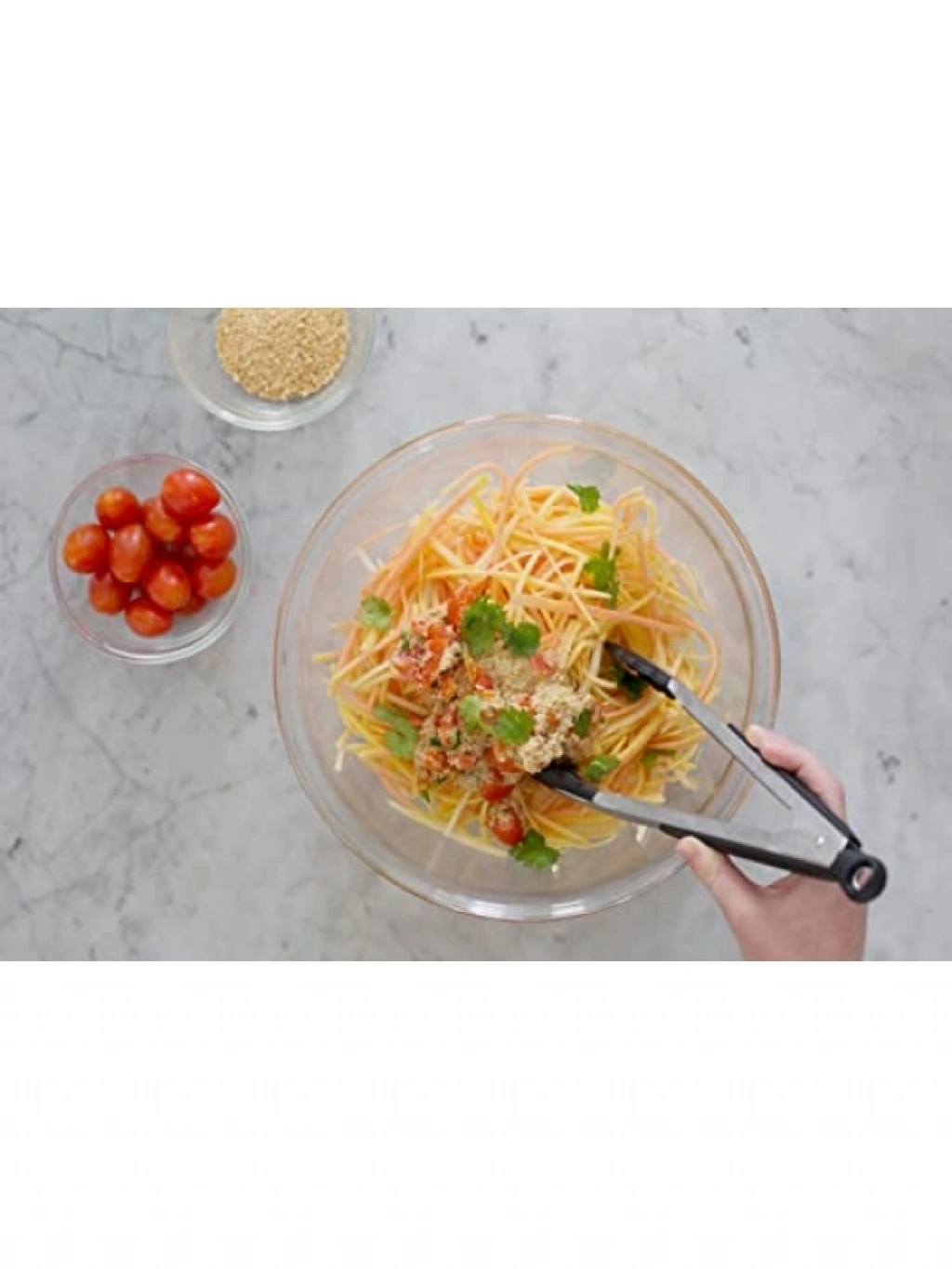Bu mutfak maşası, 23 cm boyutuyla her türlü yemek hazırlama ve servis işlemleri için idealdir. Fırçalanmış paslanmaz çelikten üretilerek dayanıklı ve uzun ömürlü bir kullanım sunar. Kaymaz sapları sayesinde güvenli bir şekilde kullanabilir, dalgalı uçları ile yiyecekleri sıkıca kontrol altında tutabilirsiniz. Bulaşık makinesinde yıkanabilir özelliği ile temizlik işlemleri son derece kolaydır. Ayrıca yer tasarrufu sağlamak için kolayca kilitlenebilir.