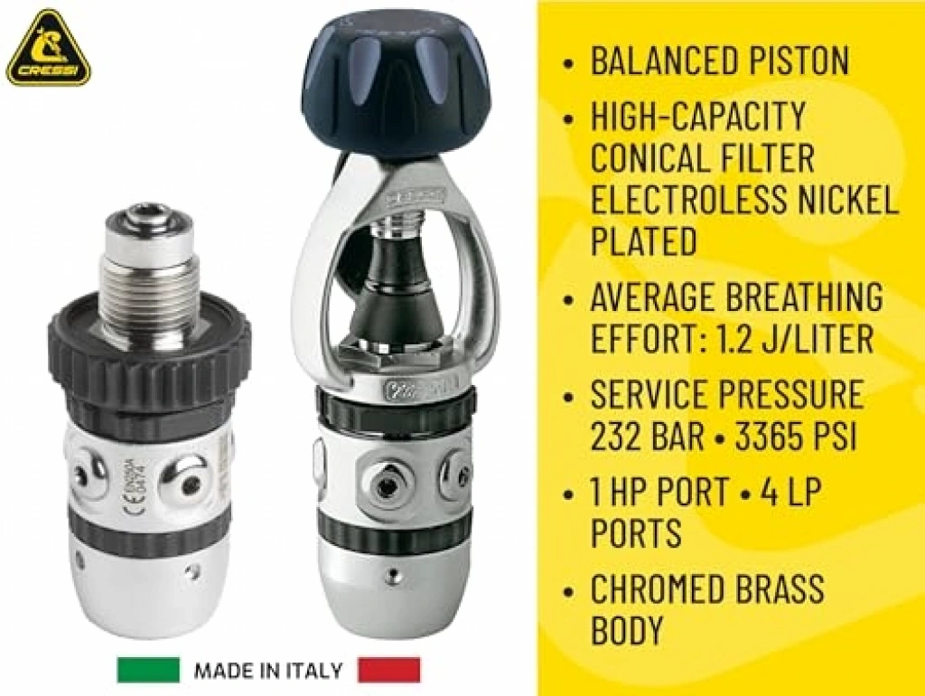Oksijen tüpüne sıkıştırma yöntemiyle monte edilen bu dalış ekipmanı, 200 bar basınca dayanıklıdır. Ergonomik tasarımı sayesinde hızlı kafa hareketlerinde ağızdan kaymayı önler ve bu sayede daha güvenli bir dalış deneyimi sunar. Kaliteli malzemelerle üretilmiştir.