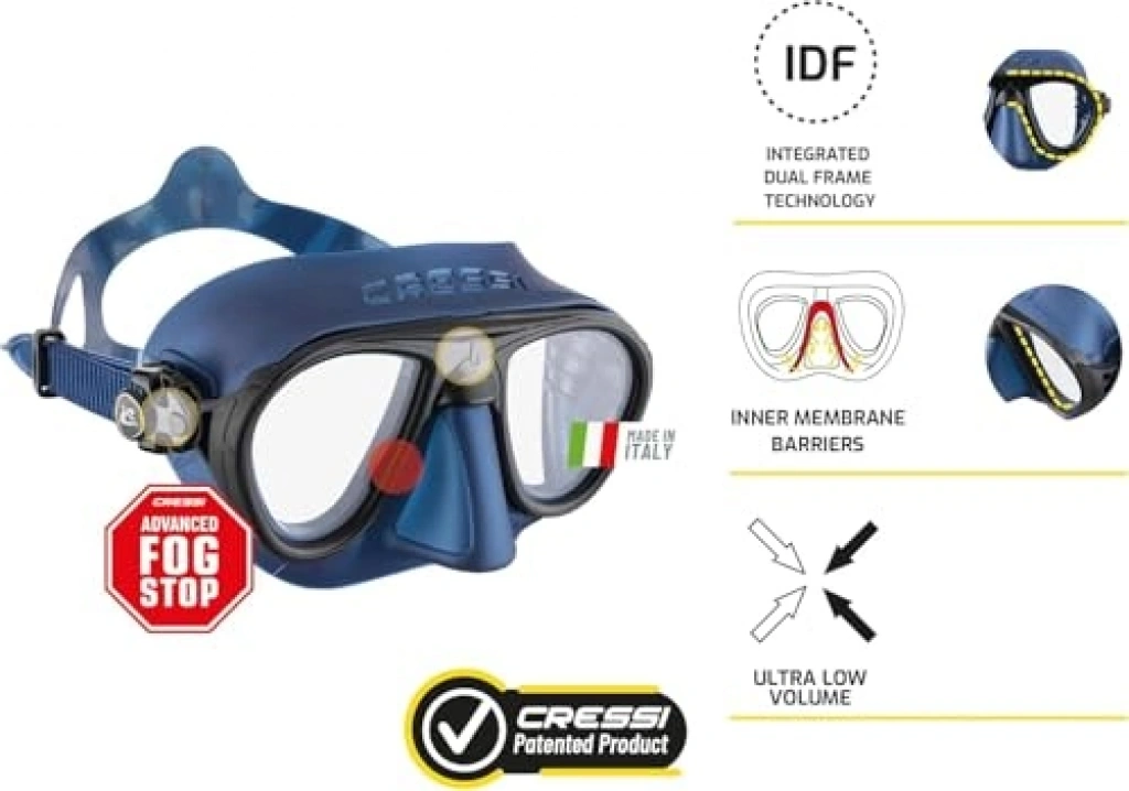 Cressi Calibro Dalış Maskesi, olağanüstü görüş açısı sunan IDF entegre çift çerçeve teknolojisi ile tasarlanmıştır. Kompakt ve hidrodinamik yapısı, ser dalışlar için mükemmel bir performans sağlar. Su altındaki deneyiminizi en iyi şekilde yaşamanız için idealdir.