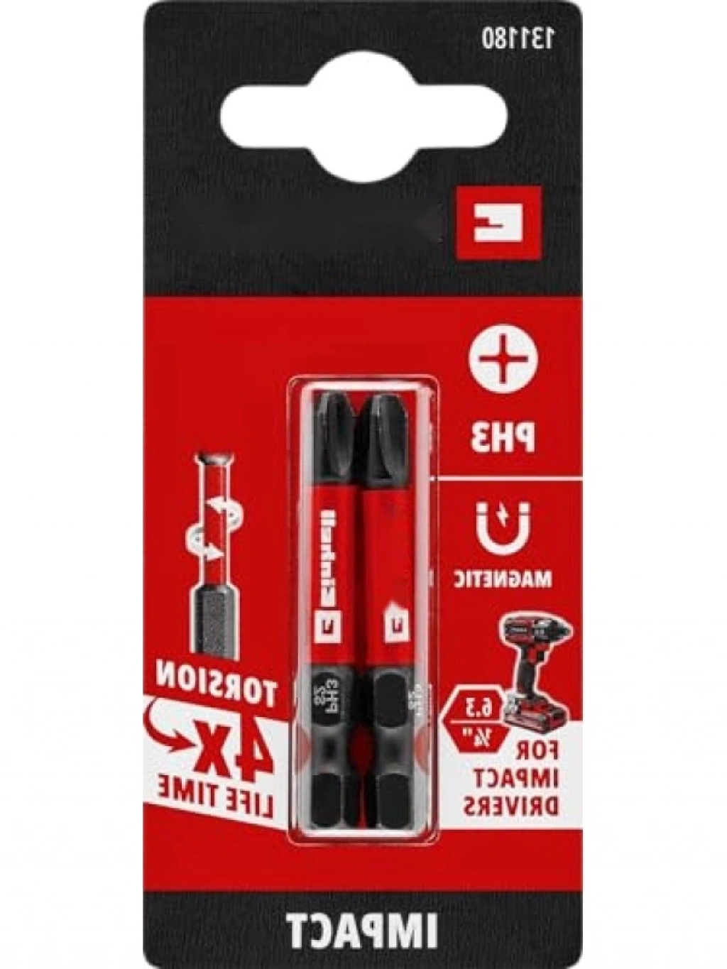 Bu darbeli bit seti, S2 çelikten üretilmiş olup yüksek dayanıklılık ve uzun kullanım ömrü sunar. Torsiyon bölgesi, sıkma işlemleri sırasında oluşan kuvvetleri etkili bir şekilde absorbe ederek tork artışlarını yönetir. 50 mm uzunluğundaki bitler, zorlu projelerde verimli güç iletimi sağlar. Set, çok yönlü kullanım için iki adet aynı bit içerirken, kolay tanımlama için kırmızı renk halkası bulunmaktadır. 1/4 inç E 6.3 sap yapısı sayesinde tüm standart akülü vidalama makineleri ve matkaplarla uyumludur.