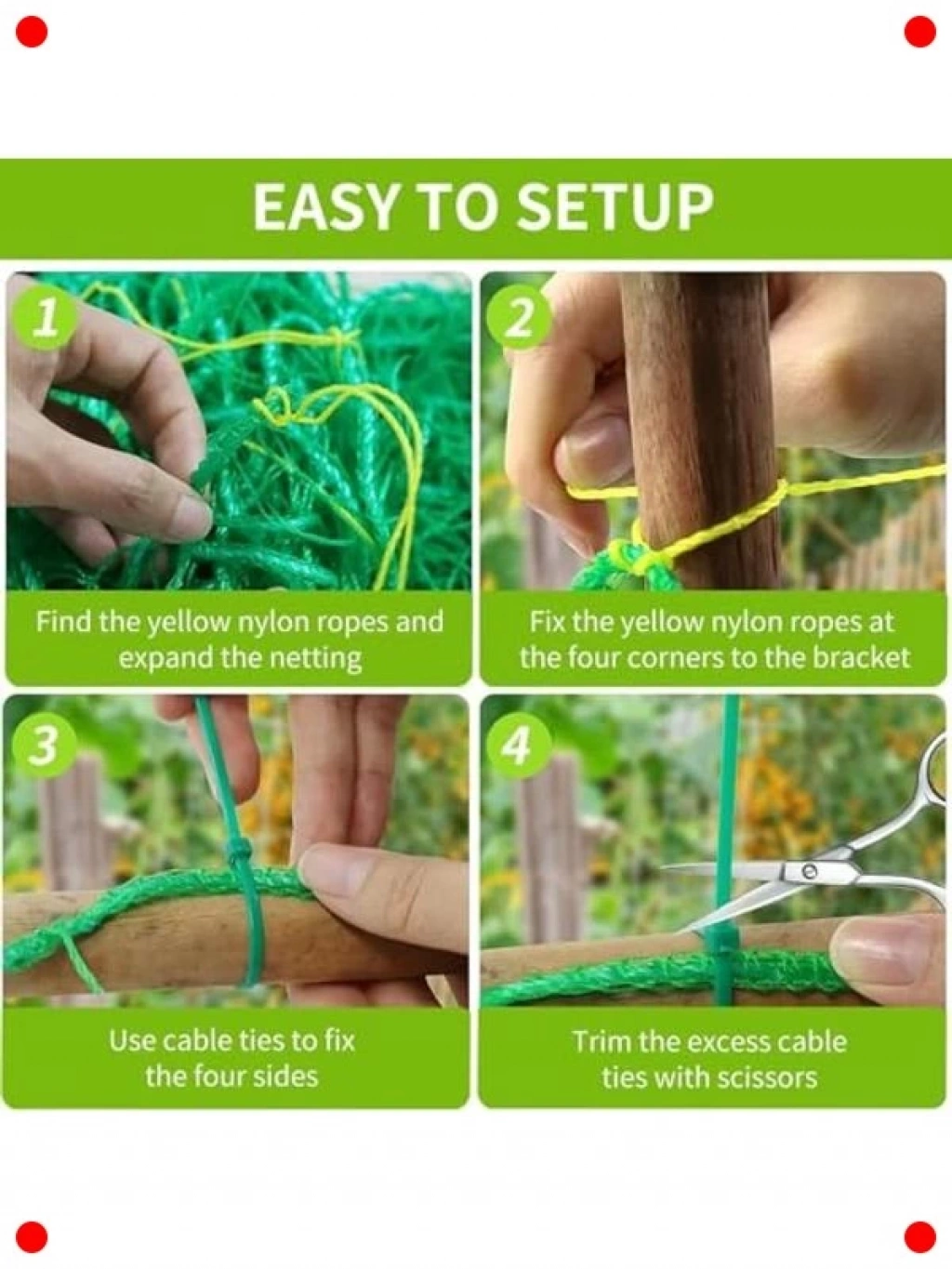 Bahçenizdeki meyve ve sebzelerinizi kuşlar, geyikler ve diğer istenmeyen ziyaretçilerden korumanın en etkili yolu! Bu dayanıklı bahçe kafes filesi, bitkilerinizi güvenle sararken, sağlıklı büyümeleri için yeterli ışık ve hava akışını sağlar. Tırmanıcı bitkiler (üzüm, fasulye vb.) için mükemmel bir destek görevi görürken, göletlerinizi yaprak ve yabancı maddelerden korumak için de kullanılabilir. Sağlam ve yırtılmaya karşı dirençli malzemeden üretilmiş olup, uzun ömürlü kullanım sunar. 1.8 metreye 2.7 metre boyutlarıyla çeşitli alanlar için idealdir. Kolay kurulumu sayesinde bahçenizi kısa sürede koruma altına alabilirsiniz.