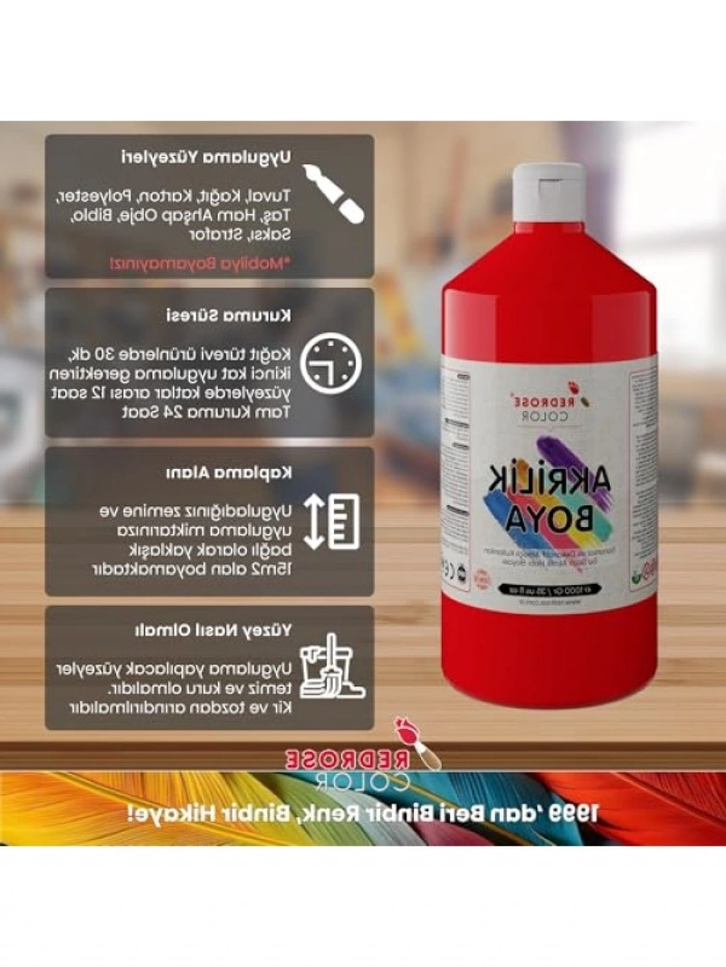 1000 gramlık bu kırmızı akrilik boya, dayanıklı yapısıyla uzun süre kullanılabilir. Sanat projeleri ve hobi çalışmaları için idealdir. Su bazlı formülü sayesinde kolayca uygulanabilir ve hızlı kurur. İç mekan ve dış mekan uygulamaları için uygun olan bu boya, canlı renkler elde etmenize yardımcı olur. Yüksek kaliteli malzemelerden üretilmiştir, bu da uzun ömürlü ve etkili sonuçlar sağlar.