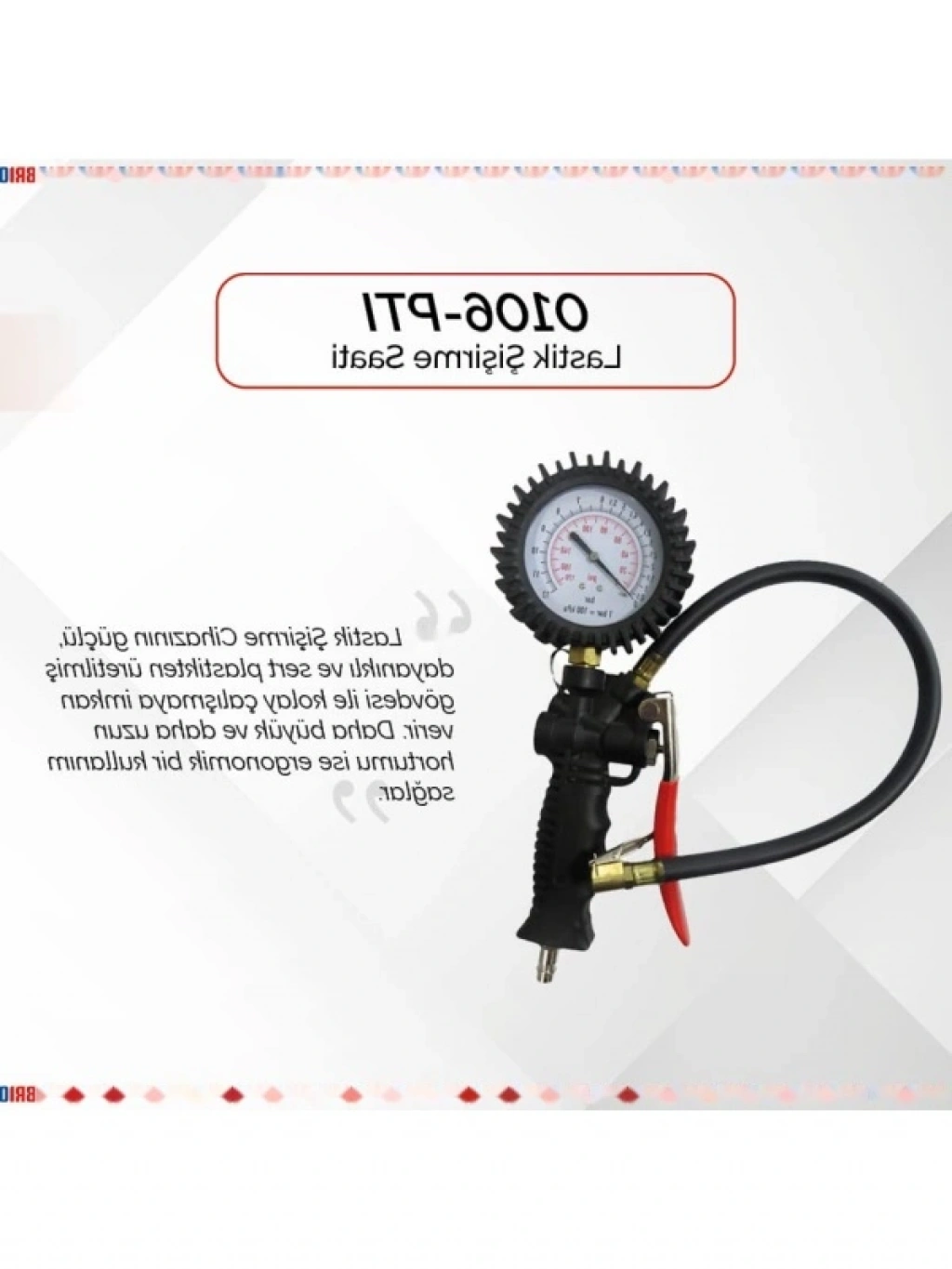 Bu lastik şişirme saati, darbeye karşı dayanıklı yapısıyla uzun ömürlü kullanım sunar. Lastiklerinizi kolayca şişirebilmenizi sağlayan bu ürün, pratik tasarımı ile dikkat çeker. Her türlü lastik bakımında güvenilir bir yardımcı olarak, hem profesyonel hem de amatör kullanıcılara hitap eder. Hızlı ve verimli bir şişirme deneyimi için ideal bir tercihtir.