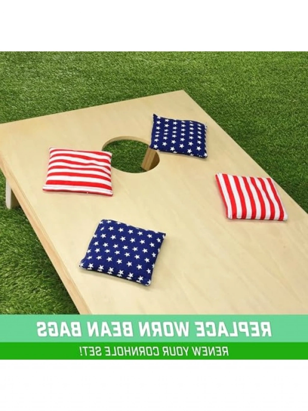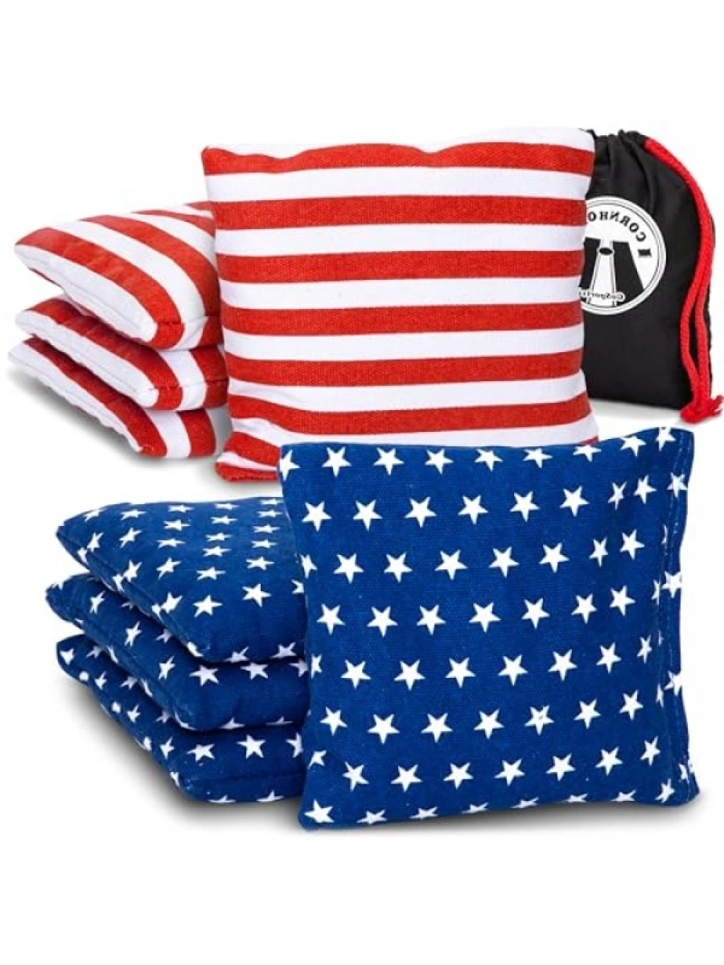 Bu mısır deliği torbası seti, dayanıklılığı artıran çift dikişli yapısıyla uzun ömürlü kullanım sunar. 8 adet Amerikan motifli armut koltuk (4 yıldız + 4 şerit) içermektedir ve her hava koşuluna uygundur. Koltuklar, sağlam ve dayanıklı ördek kumaşından üretilmiştir. Boyutları 15,2 x 15,2 cm olan bu torbalar, her biri 473 gram ağırlığındadır. Kolay taşıma ve saklama imkanı sunan sağlam taşıma çantası ile birlikte gelir.