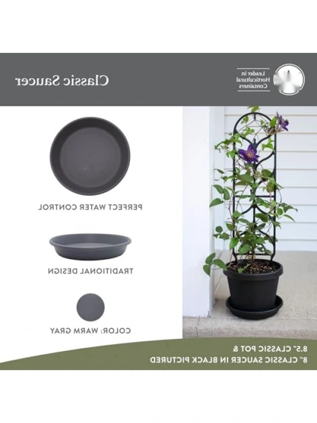 Bu klasik tabak, 35,56 cm boyutuyla dayanıklı ve hafif bir yapıya sahiptir. Plastikten üretilmiş olması, dış mekan kullanımı için mükemmel bir seçenek olmasını sağlar. Geleneksel tasarımı ve doğal renkleri ile iç ve dış mekanlarda şık bir görünüm sunar. Bitkilerinizi suladıktan sonra fazla suyun boşaltılmasına olanak tanıyarak aşırı sulamadan korur. Hava koşullarına dayanıklı olması, çatlama ve renk solmasını önler. Bitkileriniz için mükemmel bir su kontrol çözümüdür.