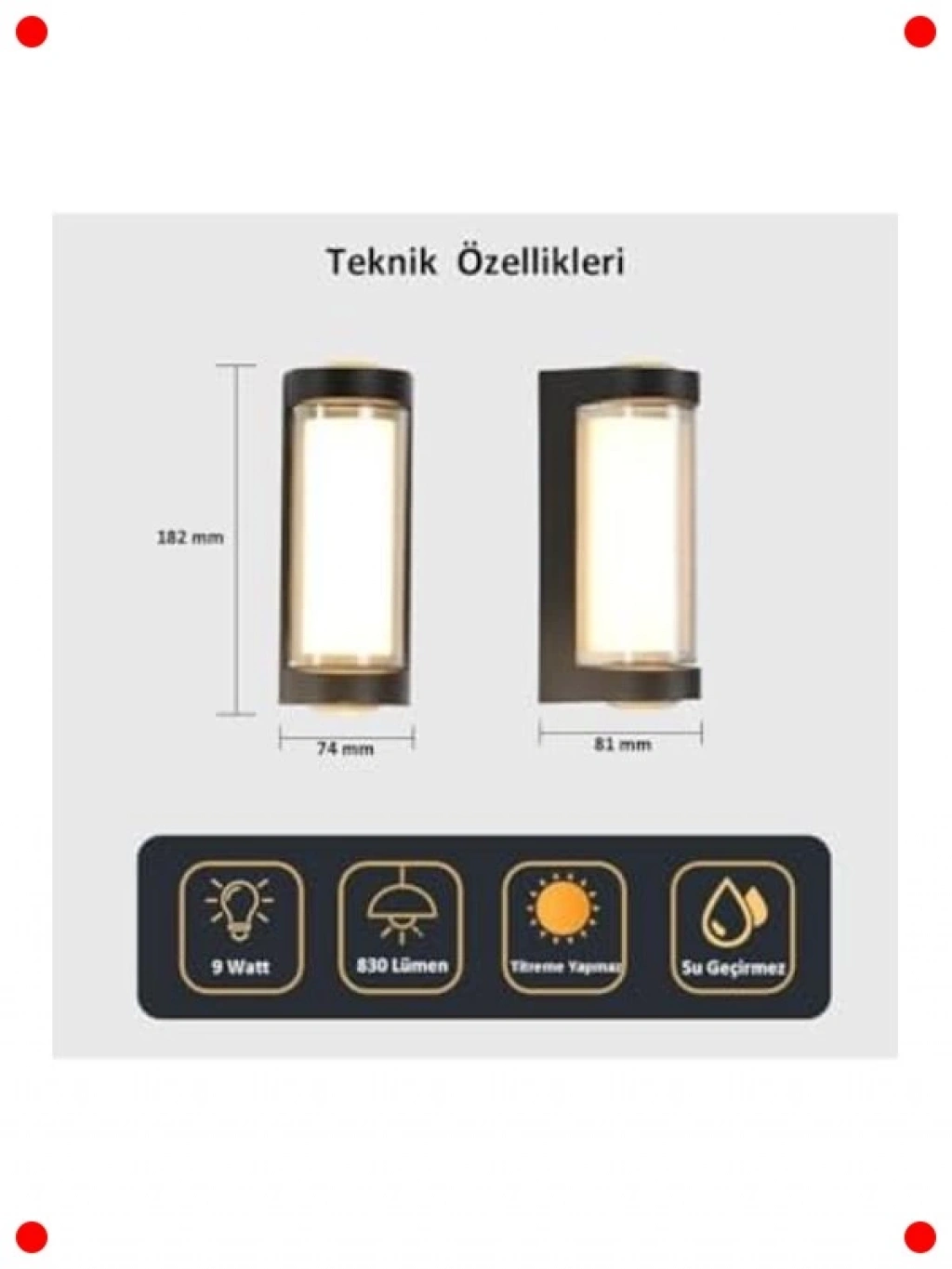 Dış mekanlarınıza modern bir dokunuş katarken etkili bir aydınlatma sağlayan bu dekoratif LED aplik, su geçirmez yapısıyla her hava koşuluna dayanıklıdır. 9W gücündeki LED teknolojisi sayesinde enerji tasarrufu yaparken, 3200K gün ışığı rengiyle doğal ve sıcak bir aydınlatma sunar. Üç yönlü ışık çıkışı, duvarlarda estetik bir efekt oluşturarak mekanınıza derinlik ve şıklık katar. Alüminyum gövdesi ve modern tasarımı, dış cephelerinize sofistike bir görünüm kazandırır. Bahçe duvarları, kapı girişleri, teraslar veya balkonlar için idealdir. Hem fonksiyonel hem de estetik bir dış mekan aydınlatma çözümüdür.