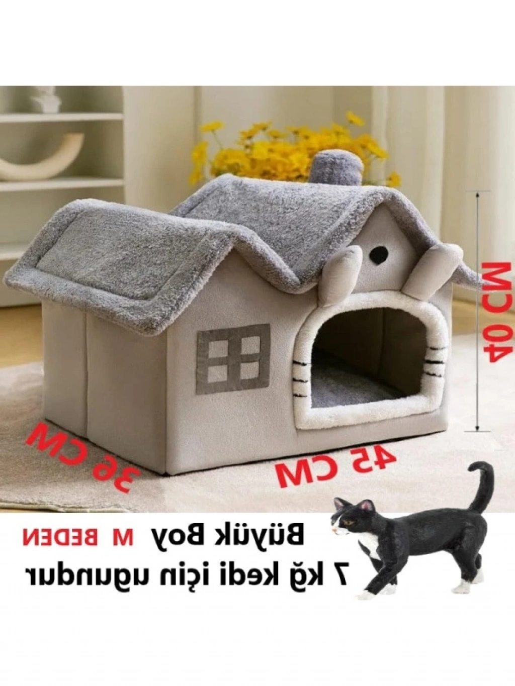 Bu kedi evi, kedinizin derin bir uyku çekmesi için tasarlanmış yumuşak bir yatak alanı sunar. Çıkarılabilir minderi sayesinde temizlik işlemleri son derece kolaydır. Geniş boyutlarıyla, kedinizin rahatça yatmasına olanak tanır. Farklı hava koşullarına uyum sağlamak için ideal bir ortam sunar. Yumuşak ve konforlu yapısı, kedinizin kendini güvende hissetmesini sağlar.