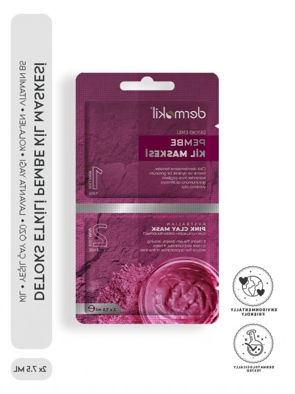 Cilt bakımında etkili bir detoks deneyimi sunan pembe kil maskesi, cildinizi arındırarak tazelenmenize yardımcı olur. İçeriğindeki doğal bileşenler, cildinize gerekli besin maddelerini sağlar ve pürüzsüz, sağlıklı bir görünüm kazandırır. İki adet 7.5 ml'lik paket ile pratik kullanım imkanı sunar; her uygulama sonrası cildinizi yenileyebilirsiniz. Cildinize ışıltılı bir görünüm kazandırmak için ideal bir üründür.