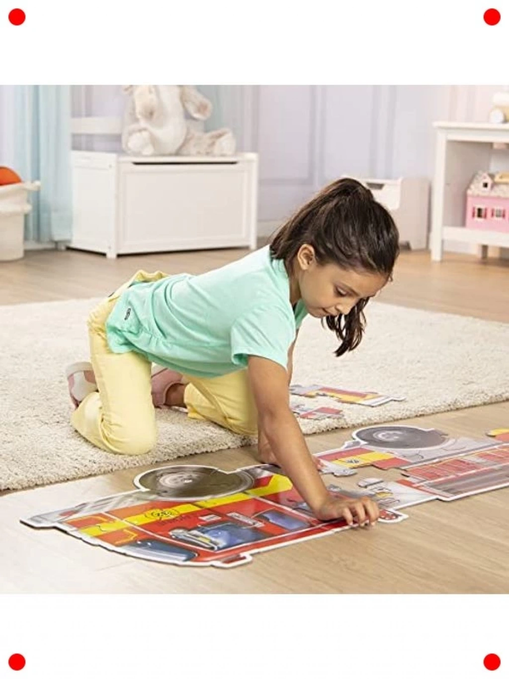 İtfaiye aracının heyecan verici dünyasını keşfedin! Bu dev yer yapbozu, büyük parçaları sayesinde küçük çocukların kolayca kavrayıp birleştirebileceği şekilde tasarlanmıştır. 24 parçalık yapısıyla hem eğlenceli hem de öğretici bir aktivite sunar. Çocuklar, yapbozu tamamlarken problem çözme becerilerini, şekil tanımayı ve el-göz koordinasyonunu geliştirir. Dayanıklı ve kalın kartondan yapılmış parçalar, uzun süreli kullanıma uygun olup, canlı renkler çocukların dikkatini çeker. İtfaiye teması, çocukların hayal gücünü harekete geçirir ve rol yapma oyunlarına ilham verir.