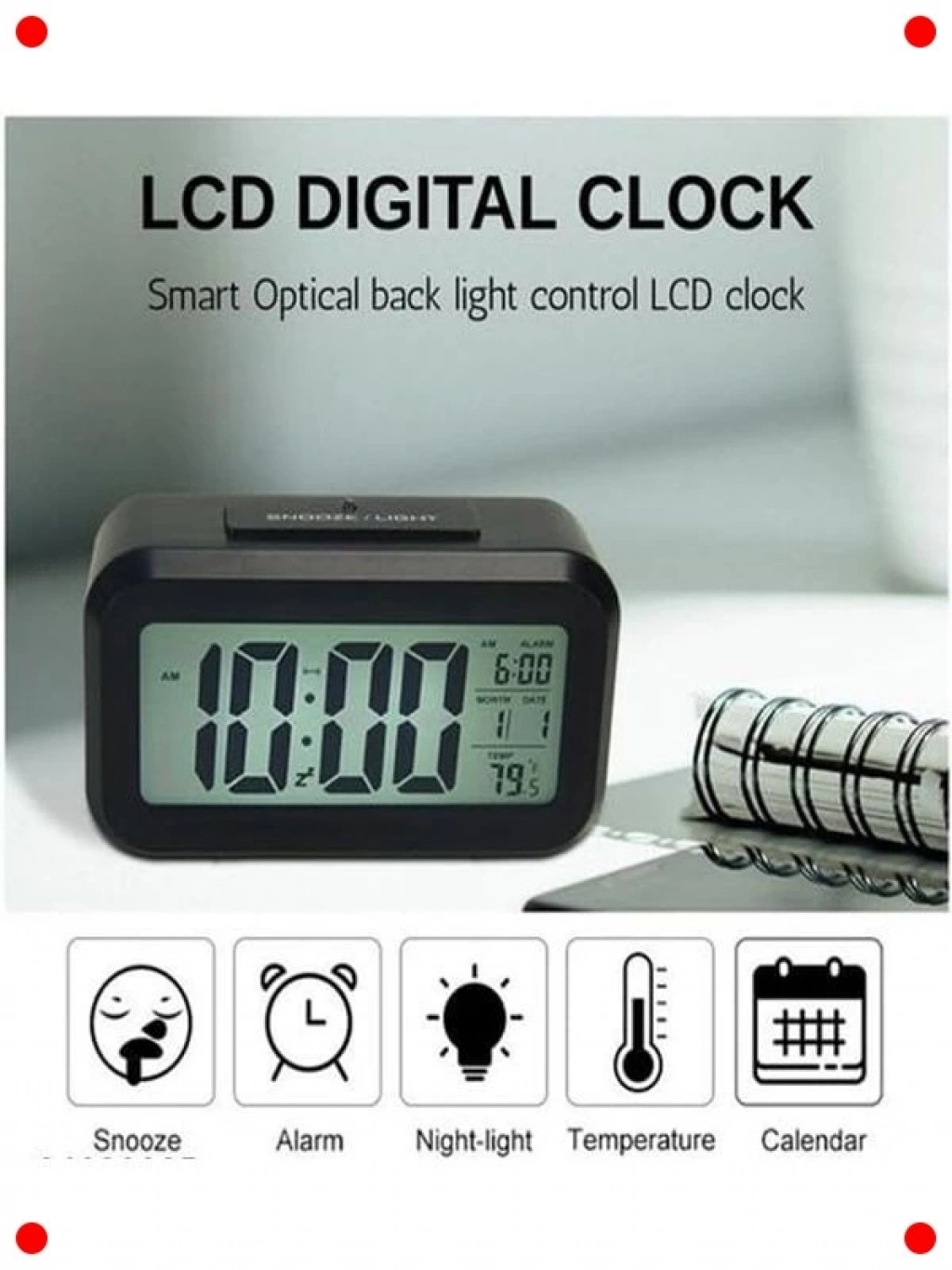 Gelişmiş özelliklere sahip bu dijital masa saati, yaşamınızı kolaylaştırmak için tasarlandı. Geniş ve net ekranı sayesinde saati kolayca okuyabilir, alarm fonksiyonu ile güne zamanında başlayabilirsiniz. Dahili ışık sensörü, ortamın aydınlığına göre ekran parlaklığını otomatik olarak ayarlar; böylece göz yorgunluğunu engeller ve gece uyku kalitenizi etkilemez. Şık ve minimalist siyah tasarımı, yatak odanızdan çalışma masanıza kadar her alana modern bir dokunuş katar. Kompakt yapısı sayesinde fazla yer kaplamaz ve kullanımı son derece pratiktir. Enerji verimli çalışmasıyla uzun ömürlü bir kullanım sunar.