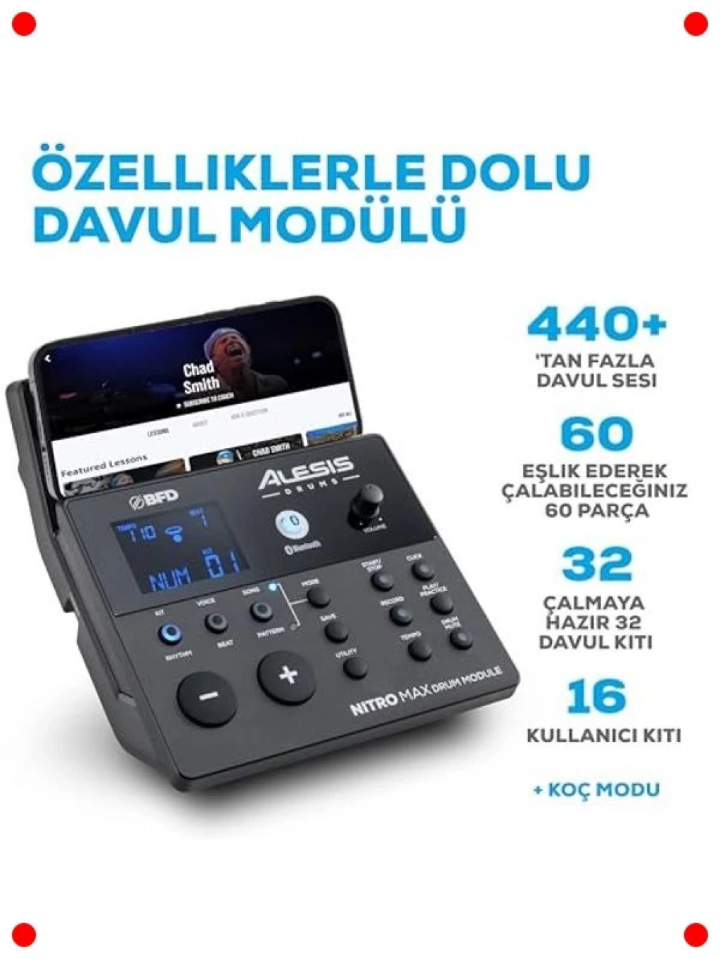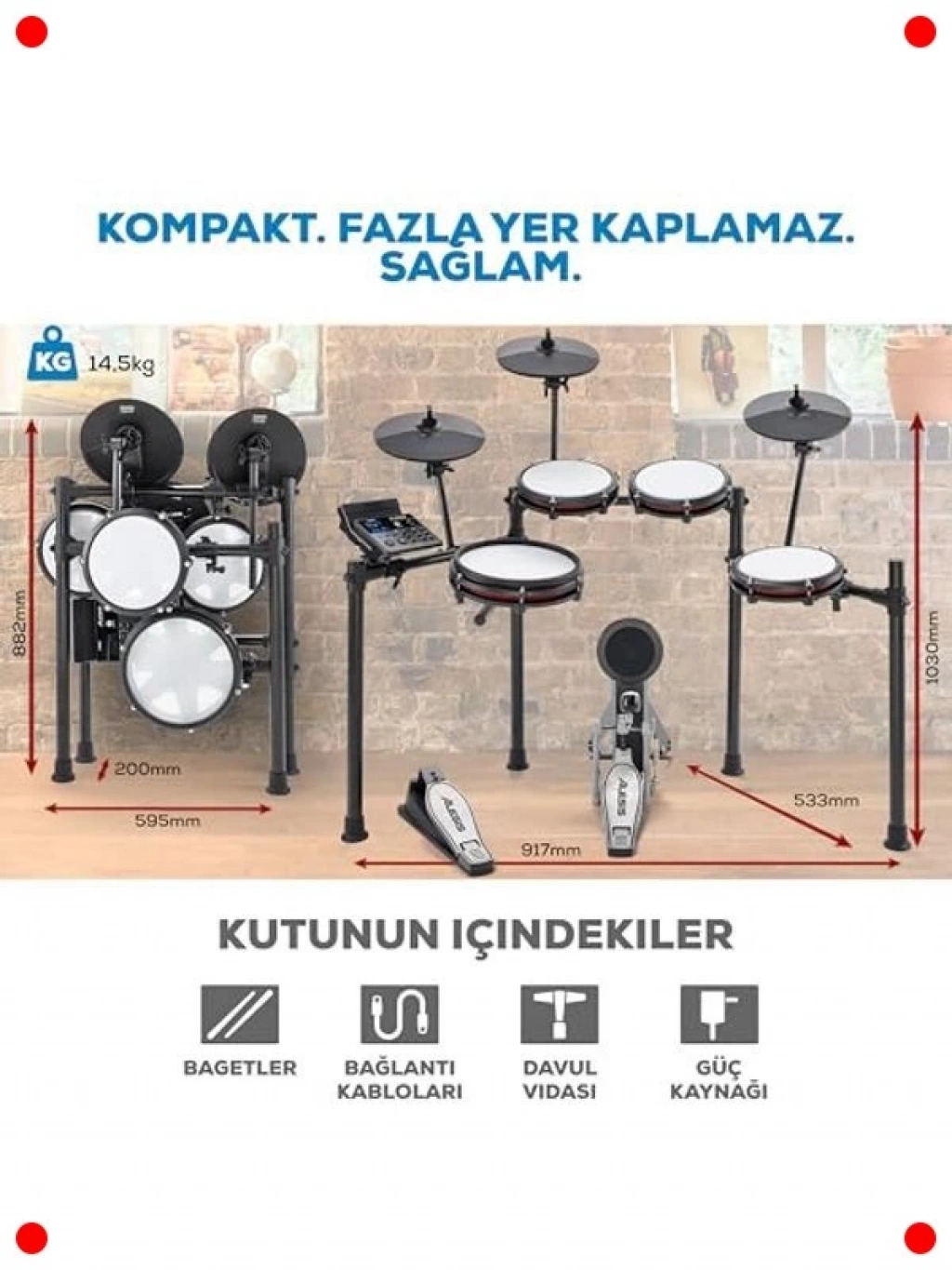 Gerçekçi davul çalma deneyimini sessiz bir ortamda yaşamak isteyenler için ideal olan bu elektronik davul seti ile ritimlerinizi özgürce oluşturun. Sessiz mesh pedleri sayesinde hem evde pratik yapabilir hem de çevreye rahatsızlık vermeden davul çalmanın keyfini çıkarabilirsiniz. 10 inçlik çift bölgeli trampet pedi, dinamik ve hassas çalma imkanı sunarken, 440'tan fazla otantik davul sesi ile geniş bir ton yelpazesi sunar. Bluetooth bağlantısı sayesinde favori şarkılarınızla birlikte çalabilir, USB MIDI ile bilgisayarınıza bağlanarak kayıt ve prodüksiyon yapabilirsiniz. Eğitim kaynaklarına erişim imkanı ve sağlam tekme pedalı ile hem yeni başlayanlar hem de deneyimli davulcular için eksiksiz bir pakettir.