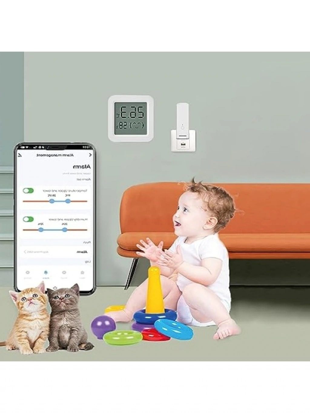 Bu yüksek kaliteli dijital ısı ve nem ölçer, Bluetooth bağlantısı ile akıllı telefonlar ile uyumlu çalışmaktadır. LCD ekranı sayesinde sıcaklık ve nem değerlerini anlık olarak görüntüleyebilirsiniz. Avrupa Birliği onaylı malzemelerden üretilmiş olup, sağlam, hafif ve hijyeniktir. Kullanıcı dostu tasarımıyla evde, ofiste veya çocuk odalarında rahatlıkla kullanılabilir, sağlıklı bir ortam oluşturmanıza katkı sağlar.