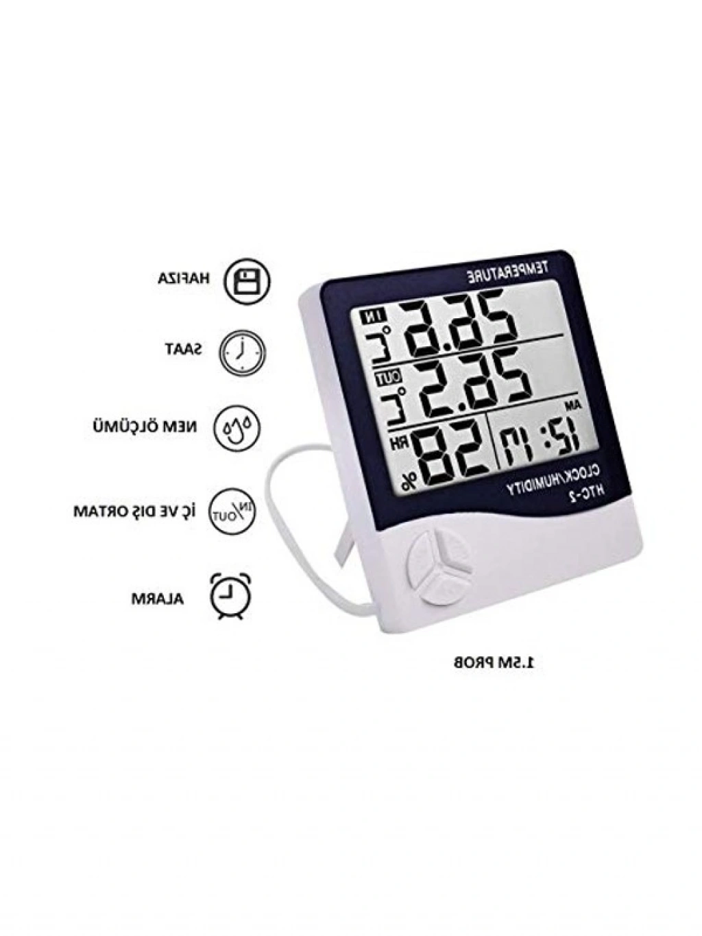 Dijital termometre, hem ısı hem de nem ölçümü yapabilen HTC-2 modeli ile kullanışlı bir ölçüm aracı sunar. Piller ile birlikte gelen bu ürün, hassas ölçümler yaparak ortam koşullarını takip etmenizi sağlar.