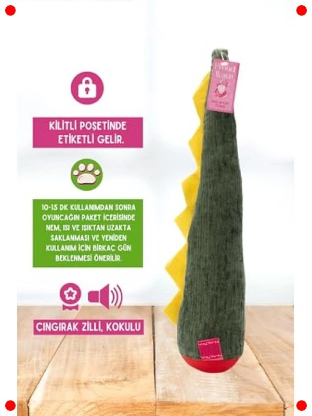 Kedinizin sıkılmasını engelleyecek ve avlanma içgüdülerini harekete geçirecek bu dinozor şeklindeki oyuncak, matatabi ve catnip özleriyle zenginleştirilmiştir. Bu doğal bitkilerin sakinleştirici ve aynı zamanda harekete geçirici etkileri sayesinde kediniz uzun süre oyuncağıyla meşgul olacak. İçindeki çıngırak sesi, oyun zamanını daha da eğlenceli hale getirir. Hem çiğneme hem de tırmalama dürtüsünü tatmin ederek mobilyalarınıza olan ilgiyi azaltır. Kedinizin zihinsel ve fiziksel sağlığı için harika bir uyarıcıdır, onların mutluluğunu ve aktivite seviyesini artırır. Sevimli tasarımıyla kedinizin favorisi olmaya aday!