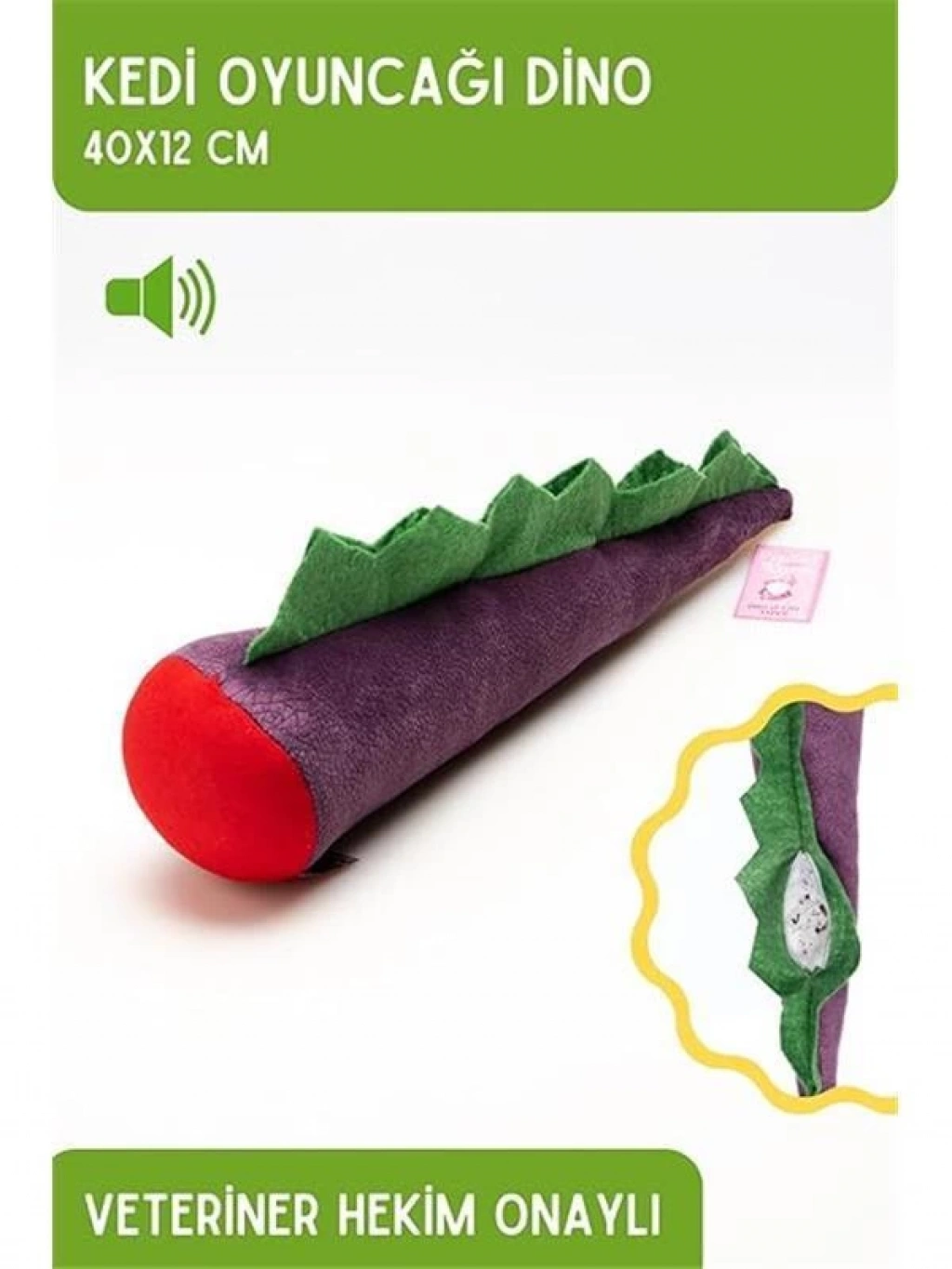 Bu ürün hakkında İçerisinde 100 doğal Actinidia polygama namı diğer matatabi ağacının en özel dallarından hazırlanmış matatabi tozu var Matatabi kedilerin temas etmekten hoşlandığı esansiyel yağları içerdiği için kediler ona sarılmayı sürtünmeyi ve onunla oynamayı severler 40x12 cm ölçülerindeki zil ve hışırtı sesli DINO kediler için mükemmel bir oyun arkadaşıdır MALZEME VE ÜRETİM Kedilerin diş ve tırnak darbelerine dayanacak mukavvemette iç astarlı sağlam ve doğal kumaşları kullanılarak dikilen DINO astarı sayesinde tozun dışarıya dökülmesini engellerken kokuyu da maksimum seviyede dışarı veriyor KULLANIM TAVSİYESİ Diğer tüm kedi oyuncakları gibi sadece oyun zamanlarında kediye sunulması DINOya olan ilginin kaybolmamasını sağlar 1015 dakika kullanımdan sonra oyuncağın paket içerisinde nem ısı ve ışıktan uzakta saklanması ve yeniden kullanım için birkaç gün beklenmesi önerilmektedir SIKIŞMAYAN ZİL İstenildiğinde gizli cırt cırttan çıkarılabilen en küçük harekette bile ses çıkaran hassas bir zil SES ÇIKARAN YAPI Kedilerin dayanamadığı bir ses vardır HIŞIRTI İşte küçük hışır poşetler bunu yapıyor MATATABİ TOZUNU HAPSEDEN BONCUK ELYAF Tozun oyuncağın içerisinde eşit biçimde kalmasını ve dışarı dökülmesini engeller