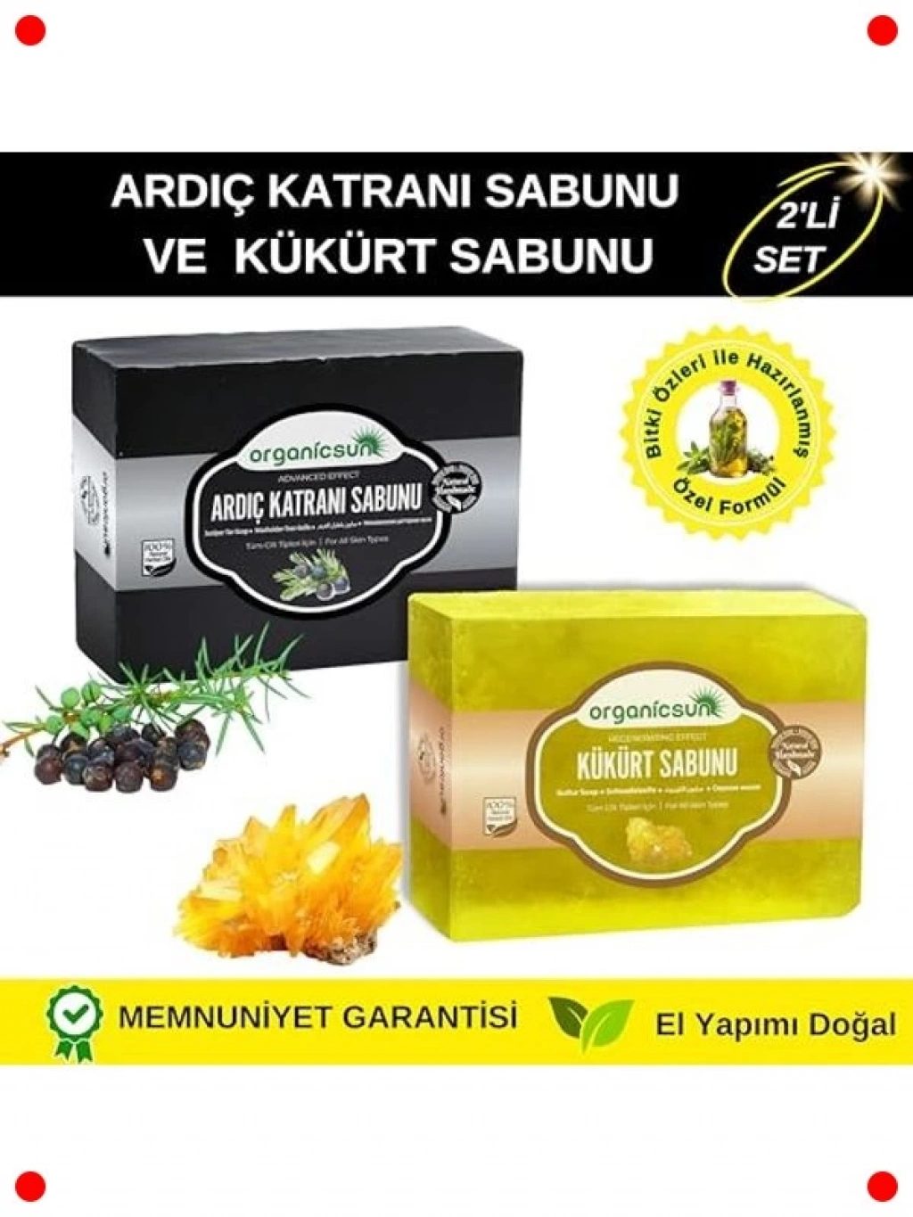 Cilt sorunlarına doğal bir çözüm sunan bu 2'li sabun seti ile kaşıntı ve diğer cilt rahatsızlıklarına veda edin. Set içerisinde yer alan doğal ardıç katranı sabunu, cildi derinlemesine temizler, arındırır ve ciltteki kaşıntı, kızarıklık gibi sorunların giderilmesine yardımcı olur. Kükürt sabunu ise cildin yağ dengesini düzenler, akne ve sivilce oluşumunu engellemeye destek olurken, antiseptik özellikleriyle cildi yatıştırır. Her iki sabun da cildinizi kurutmadan etkili bir bakım sunar, daha pürüzsüz ve sağlıklı bir cilt görünümüne kavuşmanızı sağlar.