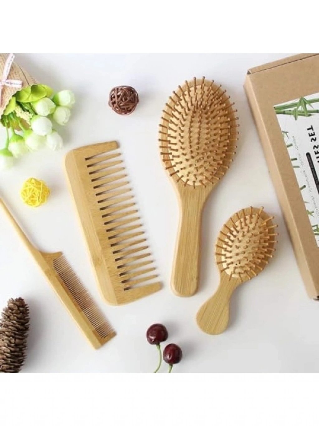 %100 bambu malzemeden üretilmiş bu doğal fırça ve tarak seti, dört farklı üründen oluşur. Doğal yapısı sayesinde saçınıza zarar vermeden nazik bir bakım sunar. Hafif ve kullanışlı tasarımı ile her yerde rahatlıkla taşıyabilirsiniz. Saç bakımınızı doğal bir şekilde yaparken çevre dostu bir alternatif arayanlar için idealdir.