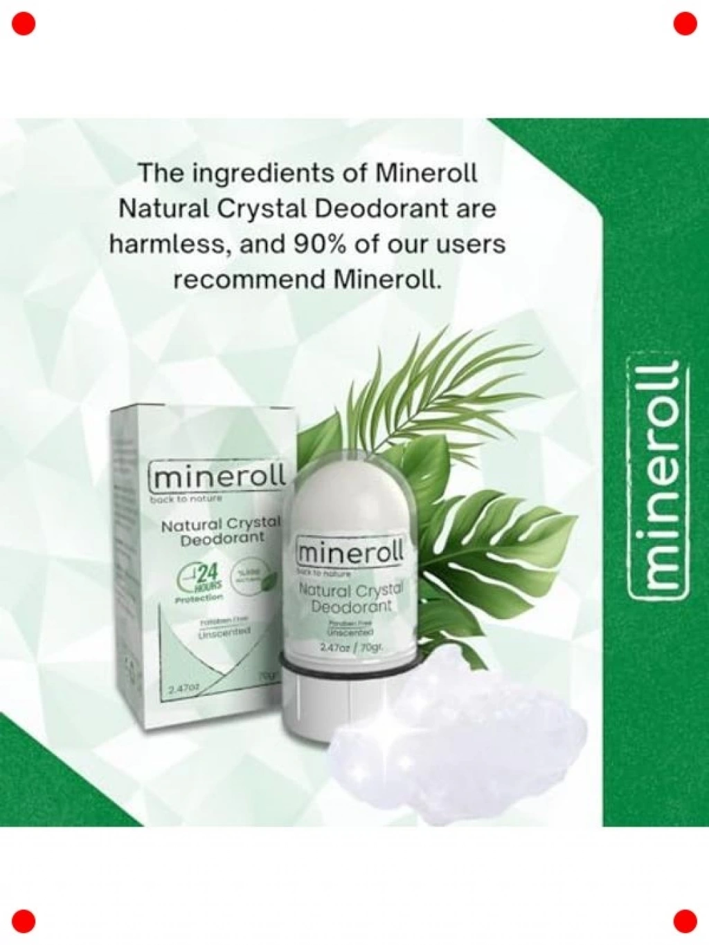 Ter kokusuna karşı doğal ve etkili bir çözüm arayanlar için ideal. Bu doğal kristal deodorant, mineral tuzların gücüyle 24 saate kadar güvenilir koruma sağlar. Vegan ve kokusuz formülü sayesinde hem kadınlar hem de erkekler için uygundur, hassas ciltler dahil tüm cilt tipleri rahatlıkla kullanabilir. Alüminyum klorohidrat gibi zararlı kimyasallar içermez, cildin doğal terleme sürecini engellemeden kötü kokuyu önler. Roll-on yapısı kolay ve pratik bir uygulama sunar. 70 gramlık pratik boyutuyla gün boyu ferah ve temiz kalın.