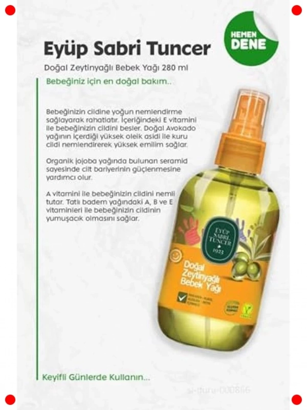 Bebeğinizin hassas cildi ve saçları için özel olarak formüle edilmiş bu doğal zeytinyağlı şampuan, göz yakmayan yapısıyla banyo keyfini artırır. İçeriğindeki doğal zeytinyağı sayesinde bebeğinizin saçlarını nazikçe temizlerken aynı zamanda nemlendirir ve yumuşatır. Saç derisinin doğal dengesini korumaya yardımcı olur ve kuruluktan kaynaklanan rahatsızlıkları önler. Paraben ve zararlı kimyasallar içermeyen formülüyle güvenle kullanabilirsiniz. 600 ml'lik geniş boyutuyla uzun süreli bir kullanım sunar.