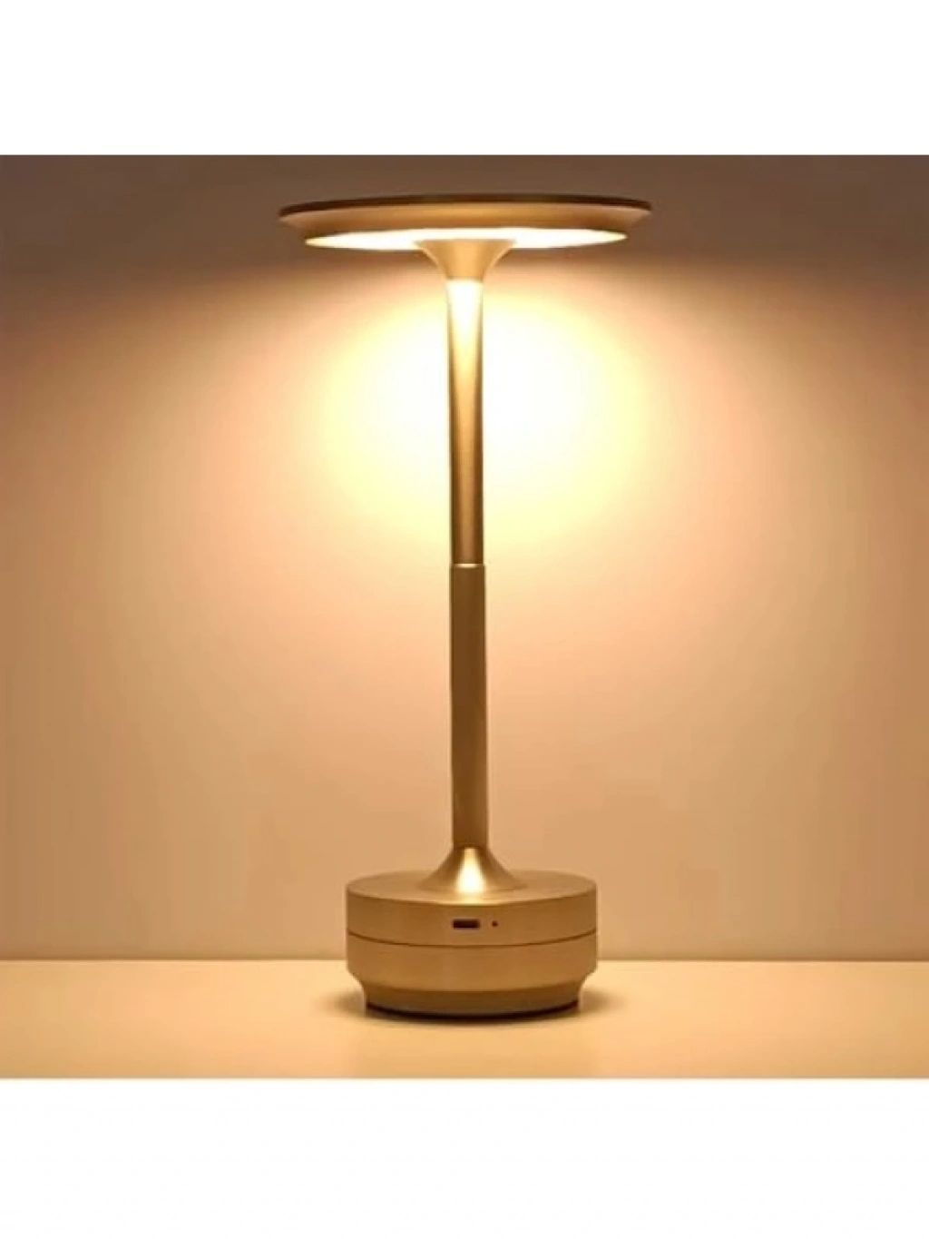Şık metal tasarıma sahip bu masa lambası, 28 cm yüksekliği ile her alanda kullanıma uygundur. Dahili LED teknolojisi ile 3 farklı renk seçeneği sunarak ortamınıza sıcak bir atmosfer katar. Kablosuz tasarımı ile tek şarjla 5-6 saat kesintisiz kullanım sağlar. Dokunmatik kontrol paneli ile ışık şiddetini kolayca ayarlayabilirsiniz. Yatak odası, kütüphane veya çalışma masasında kullanmak için idealdir.