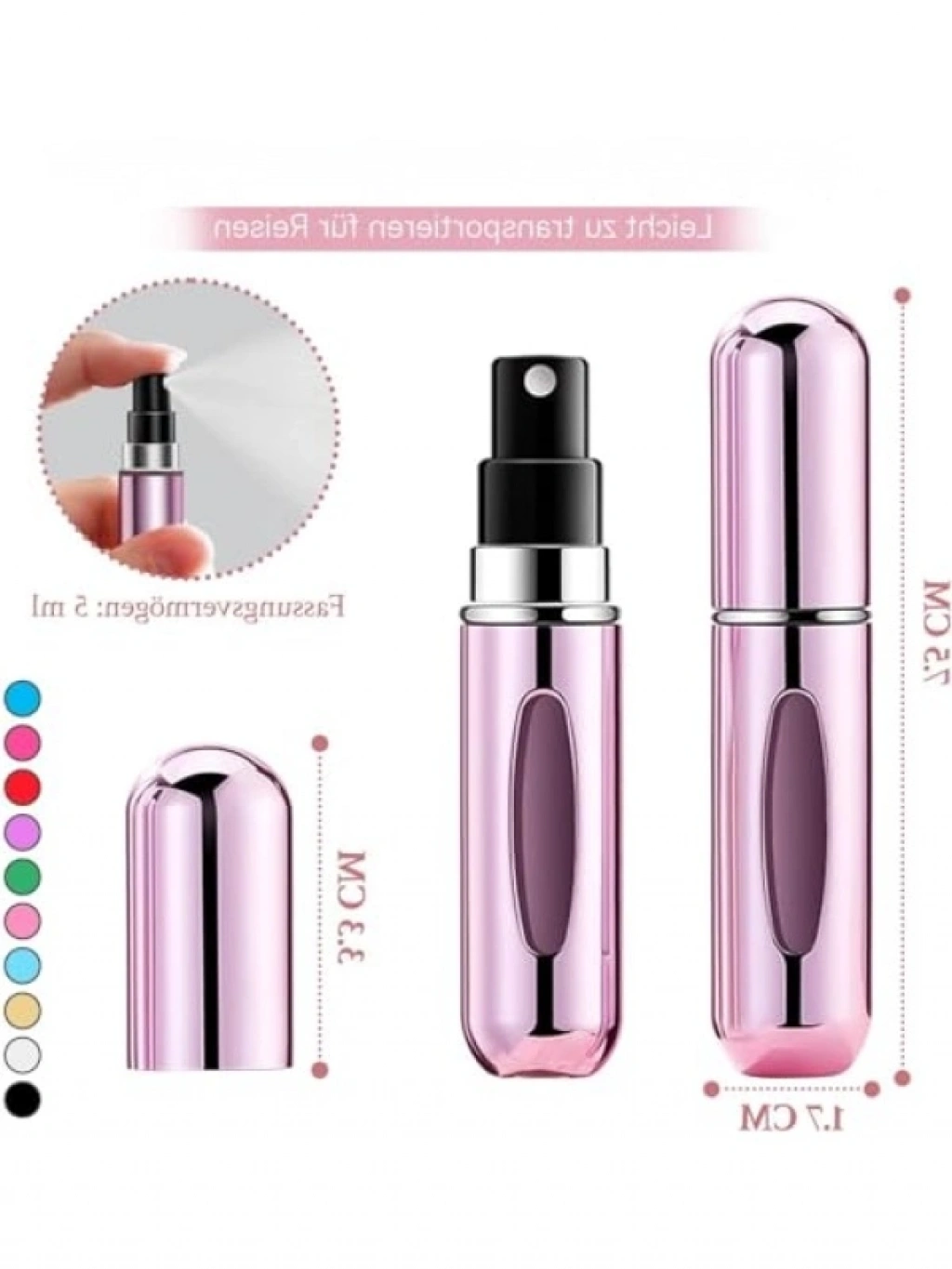 Şık ve dayanıklı alüminyum gövdesi ile bu 5ml'lik parfüm şişesi, seyahatlerinizde vazgeçilmez bir aksesuar olacak. Sızdırmaz tasarımı sayesinde parfümünüzü güvenle taşıyabilir, dilediğiniz her an tazeleyebilirsiniz. Uçak kabin sıvı kurallarına uygun olan bu mini atomizer, cebinize veya çantanıza kolayca sığar. Alt kısmındaki pratik dolum mekanizması ile parfümünüzü hızlı bir şekilde aktarabilir, israfı önleyebilirsiniz. Hafif yapısı ve kompakt boyutuyla her an yanınızda taşıyabileceğiniz bir üründür.