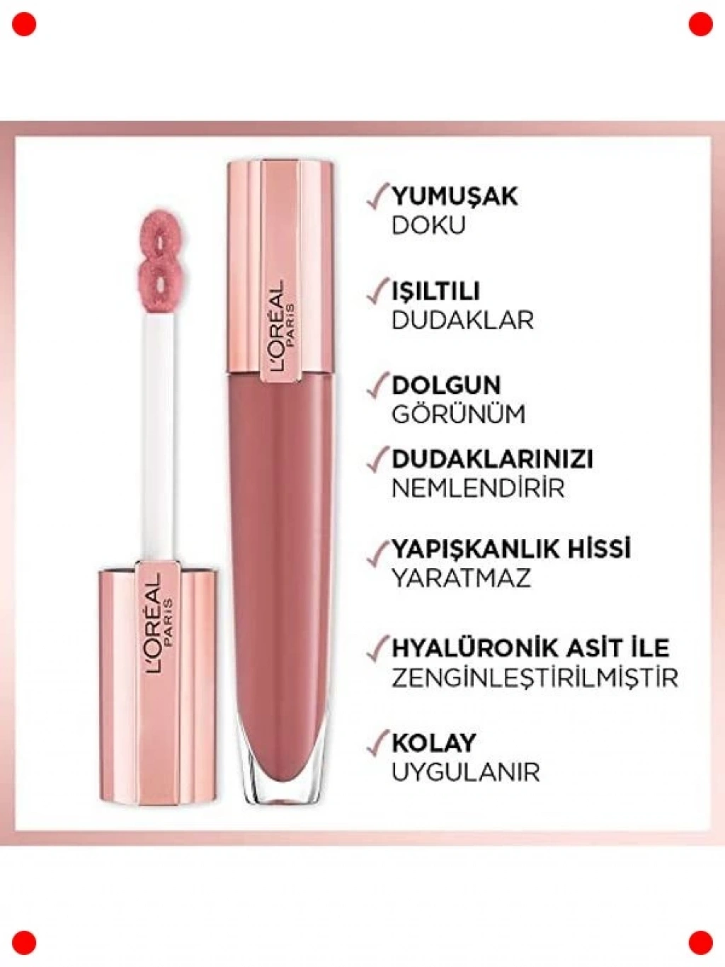 Dudaklarınıza anında dolgunluk ve göz alıcı bir parlaklık katın. Bu yenilikçi sıvı ruj, hafif ve yapışkan olmayan bir formüle sahiptir, böylece dudaklarınızda ağırlık hissi yaratmaz. Yoğun renk pigmentleri sayesinde tek sürüşte zengin ve canlı bir renk verirken, özel dolgunlaştırıcı etkisiyle dudakların daha hacimli görünmesine yardımcı olur. Uzun süre kalıcı yapısıyla gün boyu tazeliğini korur. Dudaklarınızı nemlendirerek kurumasını önler ve pürüzsüz bir görünüm kazandırır. Modern ve şık bir görünüm arayan herkes için mükemmel bir seçim.