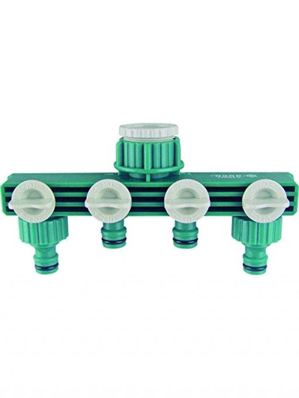 Bu dörtlü vanalı su musluk dağıtıcı adaptörü, 18,5 x 9,5 x 5,5 cm ölçüleri ile pratik bir kullanım sağlar. Yeşil rengiyle estetik bir görünüm sunan bu adaptör, suyun birden fazla noktaya dağılmasını kolaylaştırır. Bahçe sulama işlemlerinizde vazgeçilmez bir yardımcıdır.