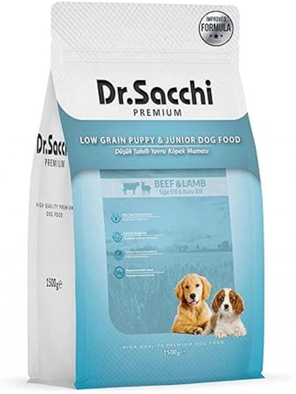 Dr.sacchi Premium Düşük Tahıllı Sığır Etli Ve Kuzu Etli Düşük Tahıllı Yavru Köpek Mamas 1,5 Kg