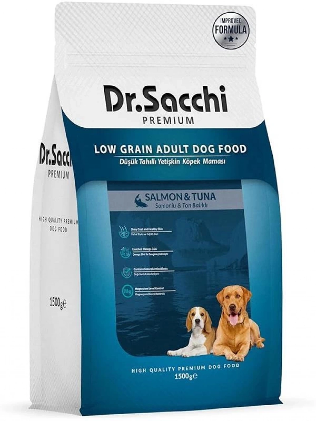 Dr.sacchi Premıum Düşük Tahıllı Somonlu Ve Ton Balıklı Yetişkin Köpek Maması 1,5 Kg