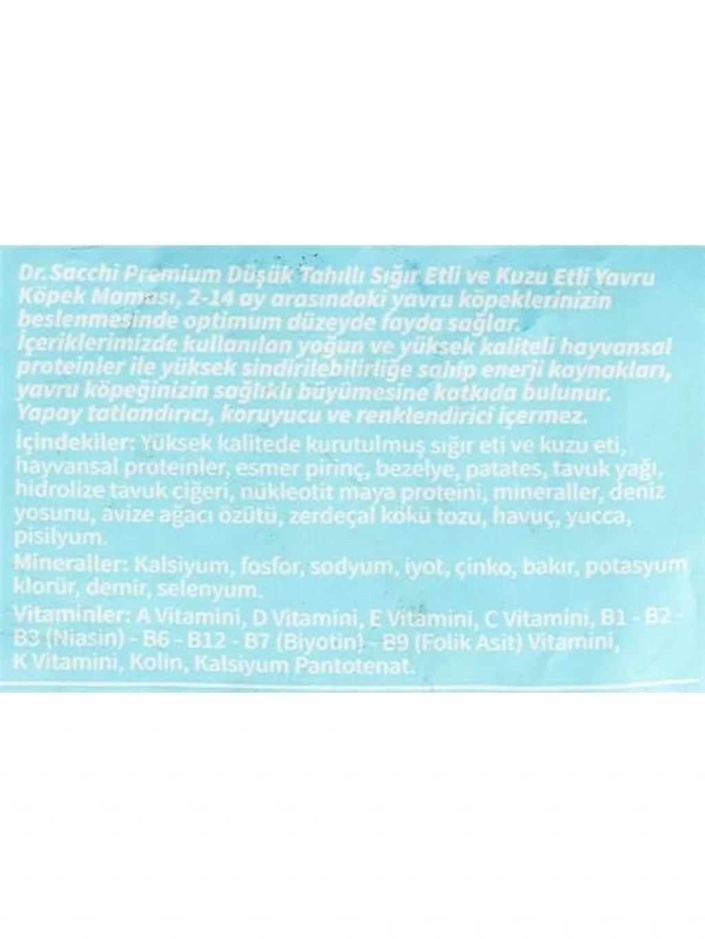 Dr.sacchi Premium Kuru Köpek Maması, Sığır Ve Kuzu Etli, Düşük Tahıllı, Yavru Köpek, 2 Kg