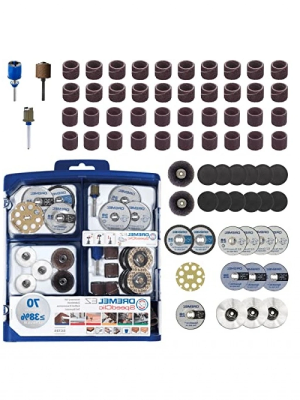 EZ SpeedClic Çok Amaçlı Aksesuar Seti, hızlı, kolay ve anahtarsız aksesuar değişikliklerine izin veren 70 yüksek kaliteli orijinal EZ SpeedClic aksesuar içerir EZ SpeedClic, Dremel'in döner alet aksesuarları için benzersiz hızlı değiştirme sistemidir Saklama çantası, Dremel aksesuarlarınızı rahatça saklamanızı sağlar