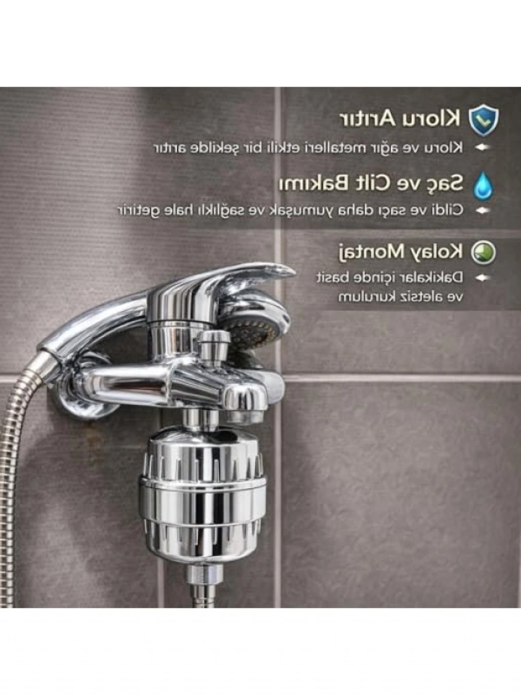 Bu duş filtresi, kloru aktif karbon yardımı ile arıtarak suyun kalitesini artırır. KDF 55 teknolojisi, ağır metalleri ve tortuları hızla uzaklaştırırken, kireç oluşumunu da azaltır. Alet gerektirmeyen montajı ile kolayca kullanılabilir. Saç ve cilt sağlığını iyileştirir, daha yumuşak ve pürüzsüz bir his sağlar. Hem çevre dostu hem de sağlıklı bir su deneyimi sunar.