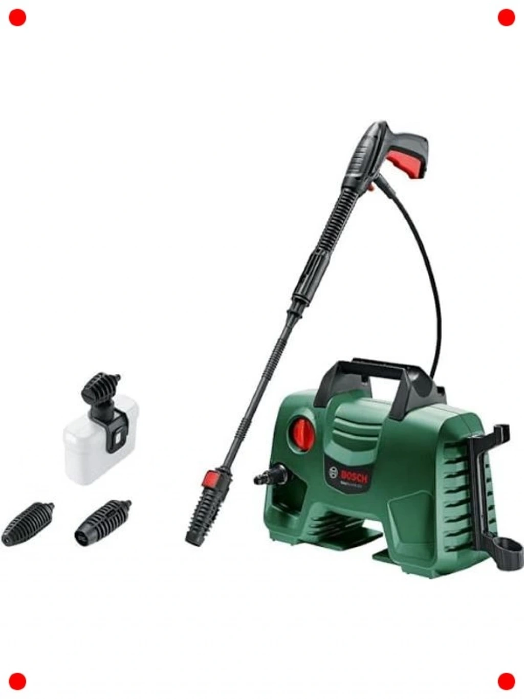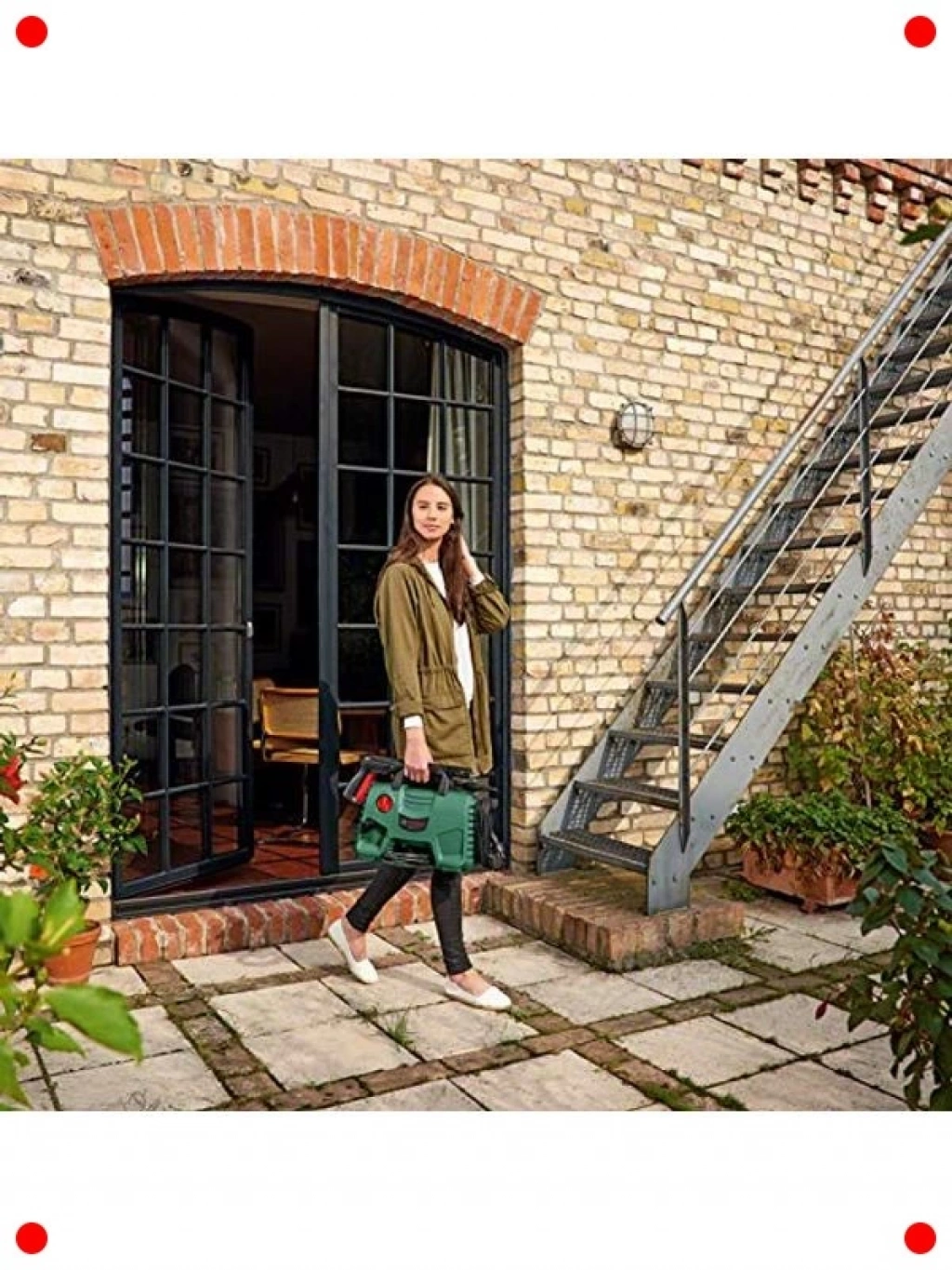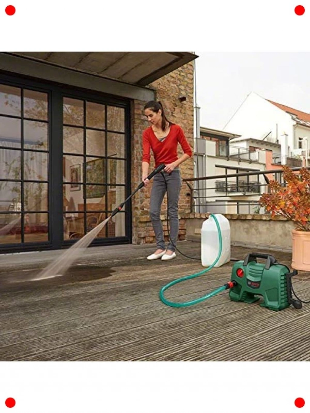 Evinizin dış mekanlarını, aracınızı veya bahçe mobilyalarınızı kolayca temizlemek için tasarlanmış EasyAquatak 110 yüksek basınçlı yıkama makinesi ile tanışın. 1300 Watt gücü ve 110 bar basıncı sayesinde en inatçı kirleri bile zahmetsizce temizler, yüzeyleri pırıl pırıl yapar. Saatte 330 litreye kadar su debisi ile hızlı ve etkili bir temizlik deneyimi sunar, zamandan tasarruf ettirir. Set içerisinde 3 farklı nozül, yüksek basınç tabancası ve şeffaf su filtresi bulunmaktadır, her türlü temizlik ihtiyacınıza uygun çözümler sunar. 5 metrelik kablo ve 3 metrelik hortum, geniş bir çalışma alanı sağlar. Kompakt ve hafif tasarımı sayesinde kolayca taşınabilir ve depolanabilir. Temizlik işlerinizi kısa sürede ve minimum eforla tamamlayın.