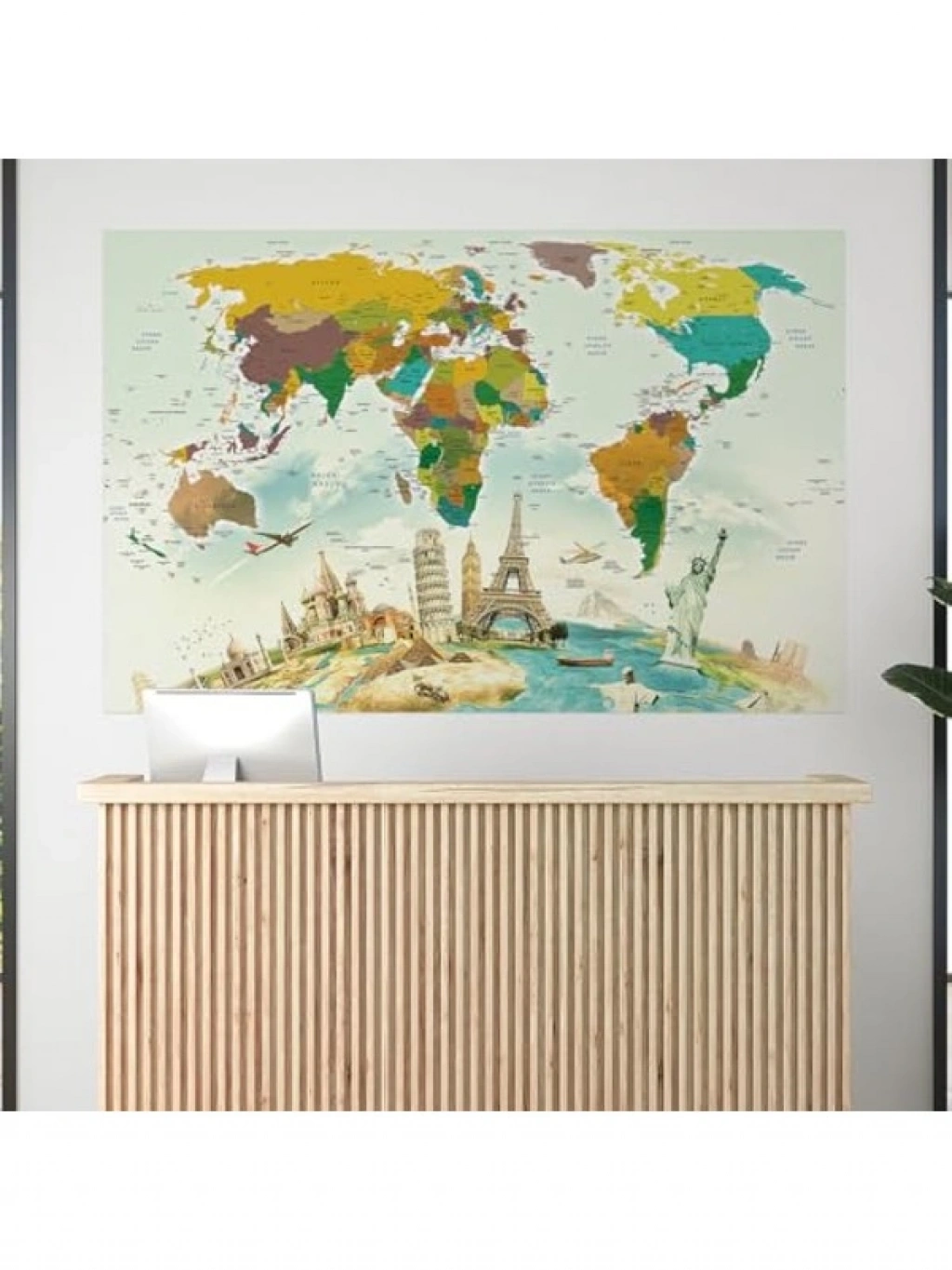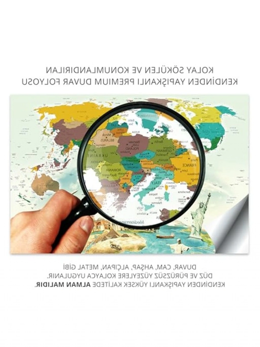 Eğitici dünya haritası duvar sticker, 70x105 cm boyutları ile dikkat çekici bir dekorasyon unsurudur. Siyasi dünya haritası, öğrenmeyi teşvik etmek ve odanızda eğitimsel bir atmosfer yaratmak için tasarlanmıştır. Renkli ve detaylı yapısı, hem çocuklar hem de yetişkinler için ilgi çekici bir görünüm sunar.