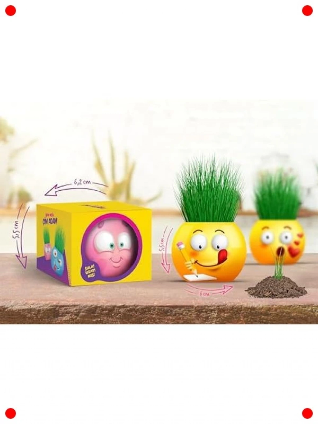 Çocuklarınız için hem eğitici hem de eğlenceli bir deneyim sunan bu 6'lı emoji temalı çim adam seti ile bitki yetiştirmenin keyfini çıkarın. Her sette 6 farklı sevimli emoji karakteri bulunur ve küçüklerin sorumluluk duygusu geliştirmesine yardımcı olurken, aynı zamanda bitkilerin büyüme sürecini gözlemlemelerine olanak tanır. Bu interaktif kit, bilim ve doğa hakkında temel bilgileri eğlenceli bir yolla öğretir. Kolay kurulumu sayesinde çocuklar kendi başlarına veya ebeveynleriyle birlikte eğlenceli vakit geçirebilirler. Yeşil çimlerin filizlenmesini izlemek, meraklarını uyandırır ve sabır becerilerini geliştirir. Doğanın döngüsünü ve canlıların gelişimini anlamaları için harika bir başlangıç noktası sunar. Özellikle küçük bahçıvanlar ve keşfetmeyi seven çocuklar için mükemmel bir hediye seçeneğidir.