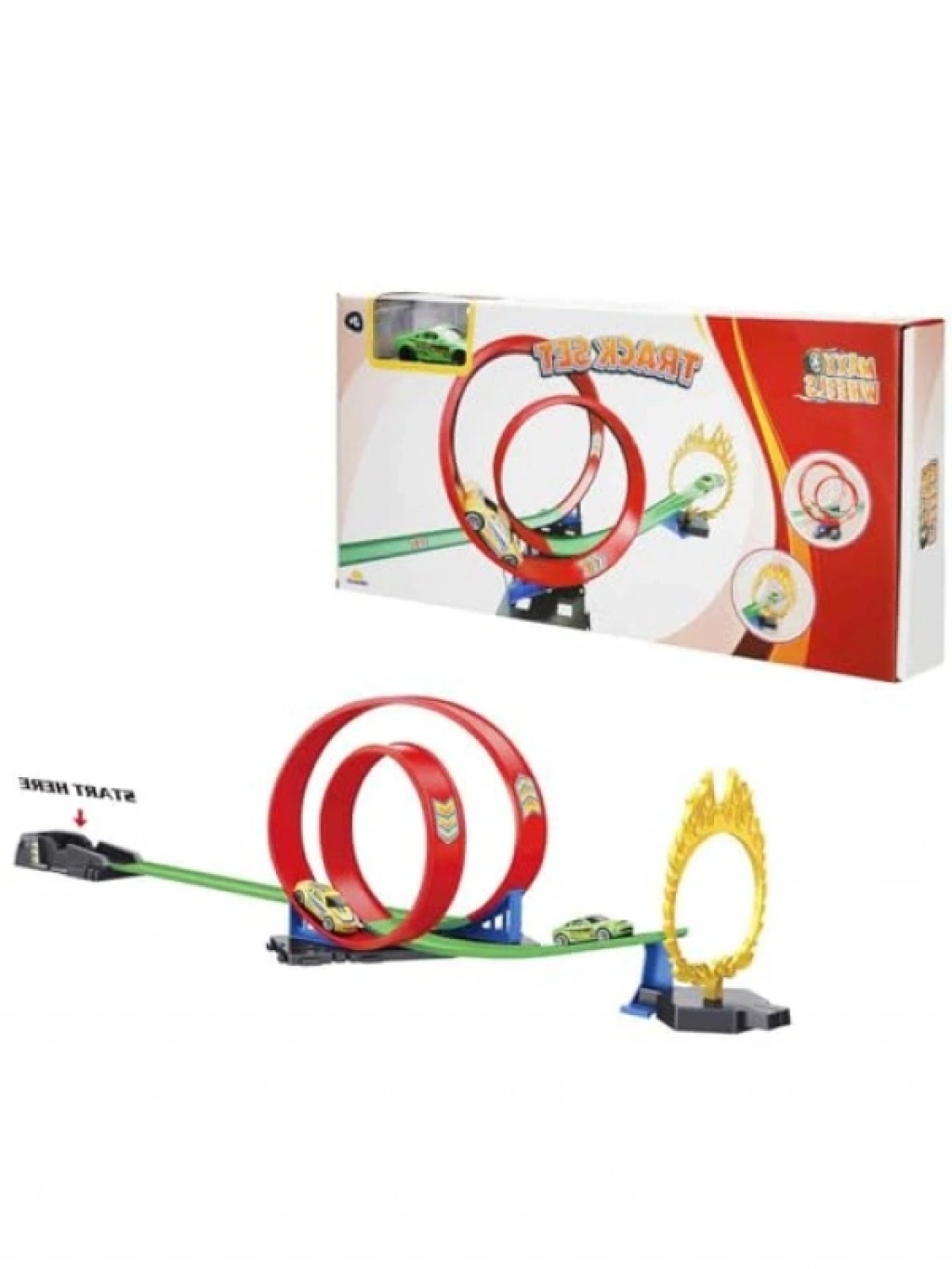 Bu pist seti, çocuklar için eğlenceli ve güvenli bir oyun deneyimi sunar. Alevli çember tasarımıyla heyecan dolu yarışlar yapabilirler. Eğlenceli aktiviteler için idealdir ve motor becerilerini geliştirir.