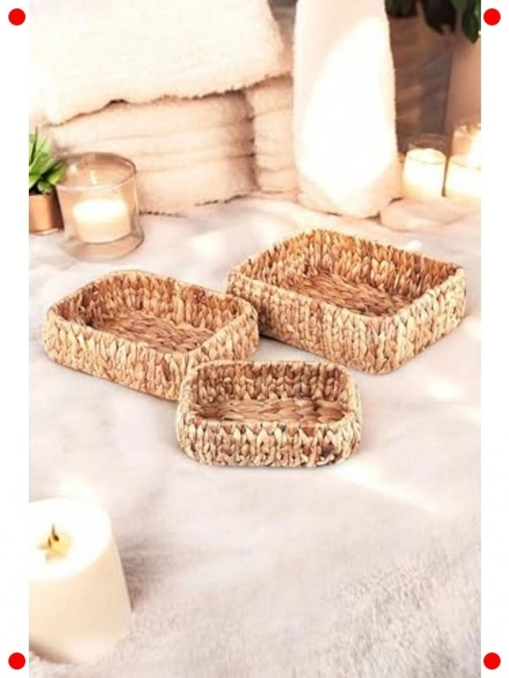 Bu el yapımı 3'lü kare bombeli hasır sepet seti, evinize doğal bir dokunuş ve düzen getiriyor. Çeşitli boyutlardaki sepetler, farklı eşyalarınızı düzenlemek için idealdir – ister dergiler, battaniyeler, oyunca isterse banyo malzemeleri olsun. Doğal hasır malzemeden özenle örülmüş olrı, her bir sepete eşsiz bir karakter kazandırır ve yaşam alanlarınıza sıcak bir atmosfer kr. Dayanıklı yapıları uzun süreli kullanım vadederken, estetik görünümleriyle de dekorasyonunuzu tamamlar. Evinizin her köşesinde pratik ve şık bir depolama çözümü sunar.