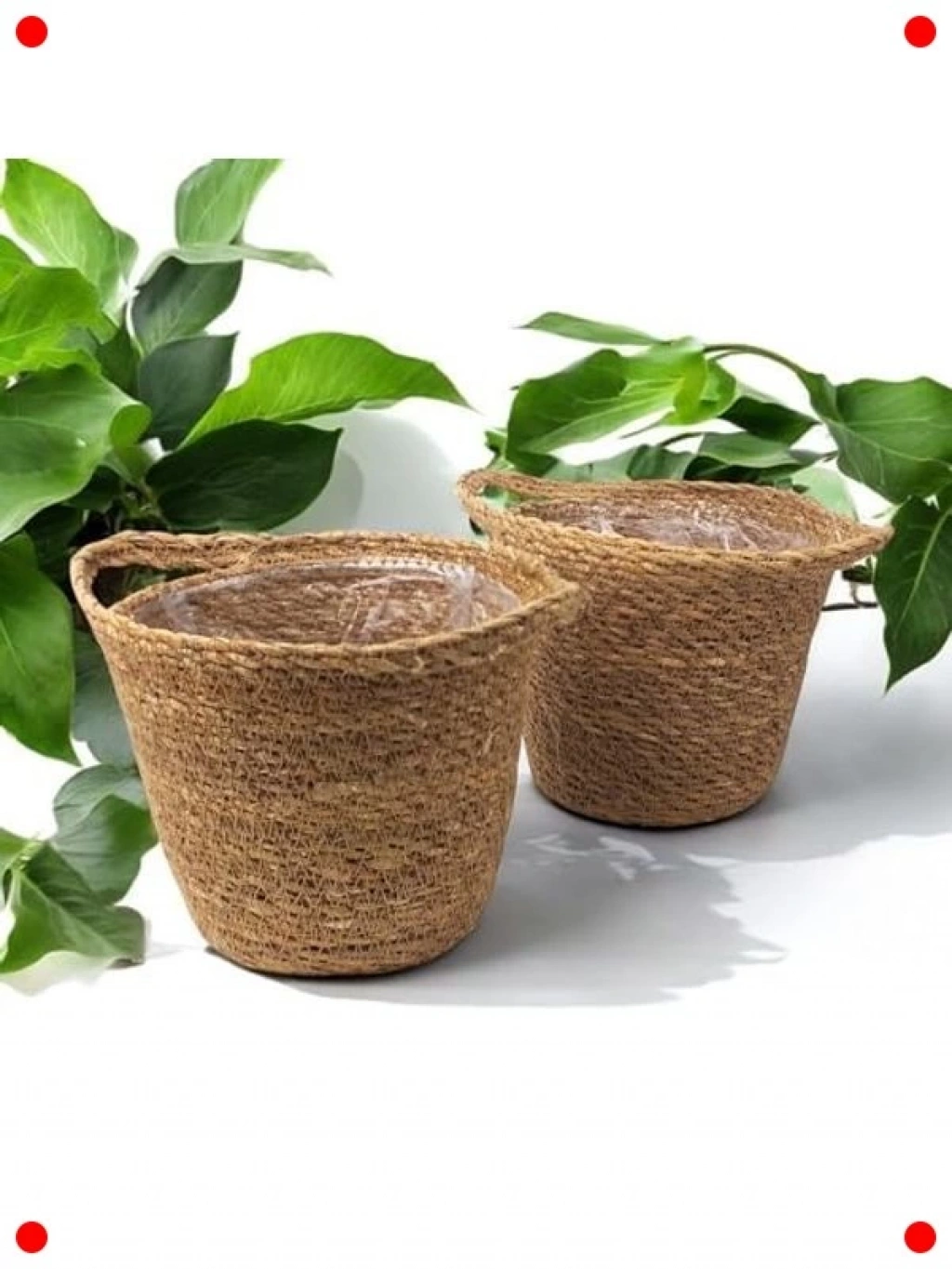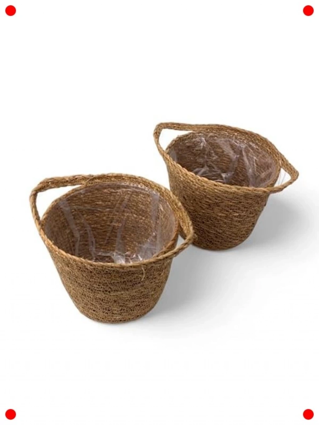 Bu zarif el yapımı çift kulplu hasır saksılık ile evinize doğal bir zarafet katın. Doğal malzemelerden el işçiliğiyle üretilen rustik tasarımı, en sevdiğiniz bitkileri mükemmel bir şekilde tamamlayarak her iç mekana sıcaklık ve karakter getirir. 17 cm ölçülerindeki bu saksılık, küçük saksı bitkileri, sukulentler veya otlar için idealdir. Saksılık, bitkilerinizin sağlıklı kalmasını ve su sızıntısı veya toprak dağınıklığını önleyen entegre bir iç koruma astarı ile birlikte gelir. Kullanışlı çift kulpları, kolayca hareket ettirmenizi sağlayarak esnek yerleştirme ve yeniden dekorasyon imkanı sunar. Yaşam alanınızı güzelleştiren ve yeşilliklerinizi şık bir şekilde sergileyen büyüleyici ve fonksiyonel bir dekoratif parçadır.