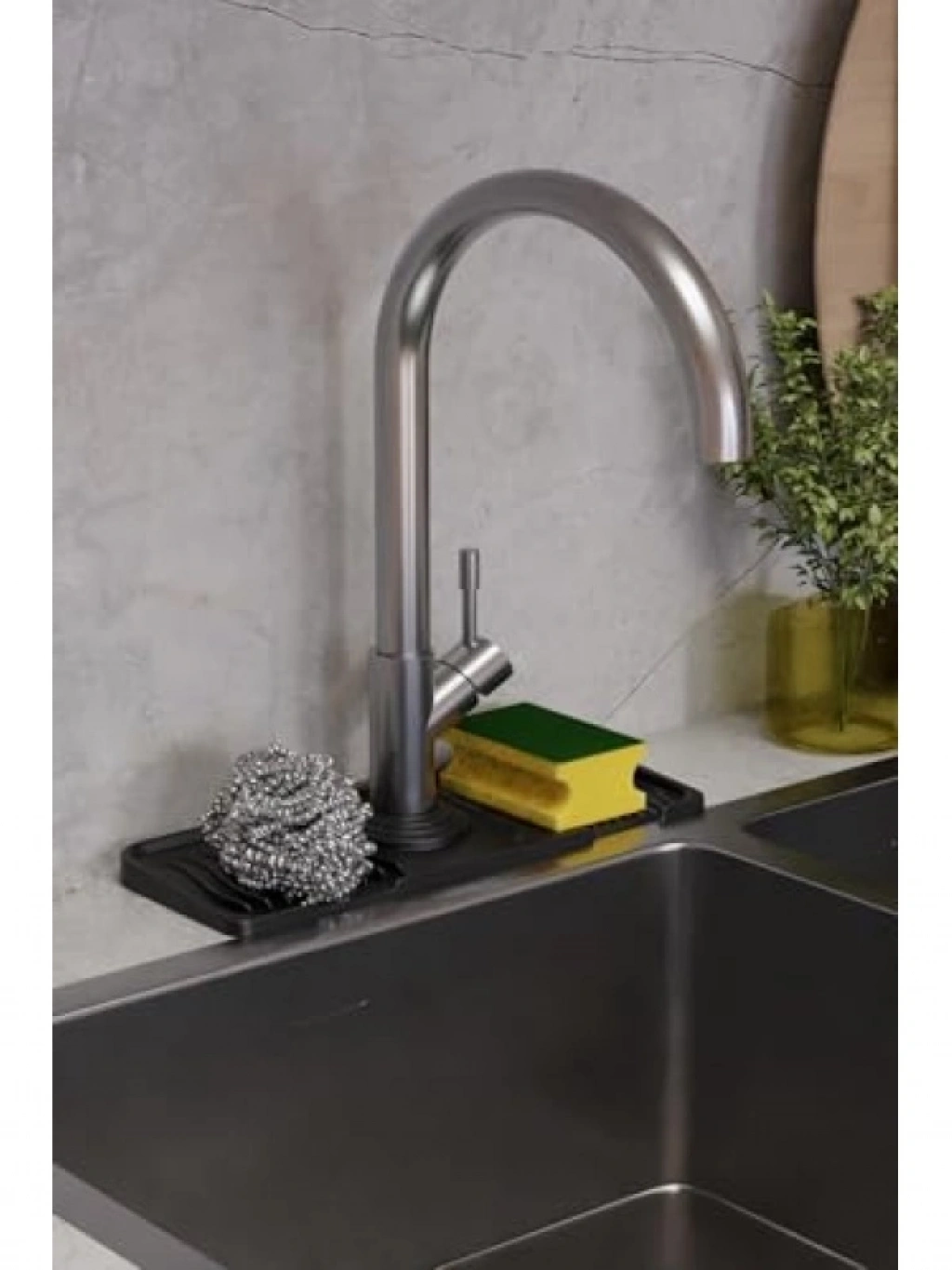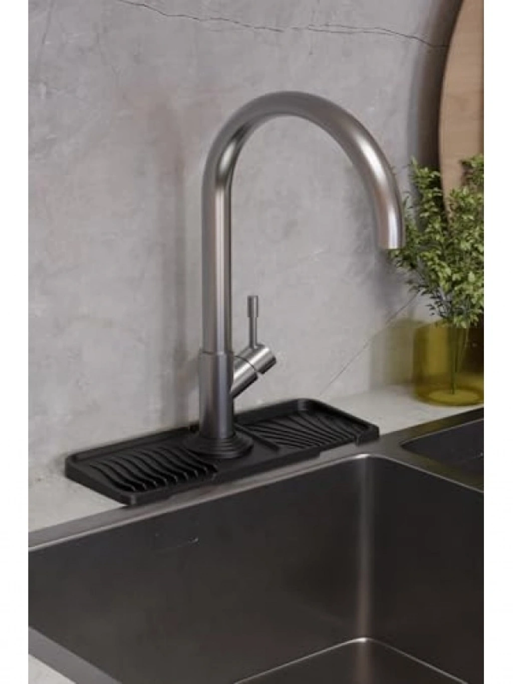 Bu elastik silikon musluk matı, mutfak ve banyo alanlarınızda su sızıntılarını önler. Su tutucu özelliği sayesinde lavabo etrafında su birikmesini engeller. Kullanımı kolay ve pratik olan bu ürün, temizliği de oldukça basittir. Uzun ömürlü yapısıyla günlük kullanıma uygundur. Siyah rengi ile şık bir görünüm sunar.