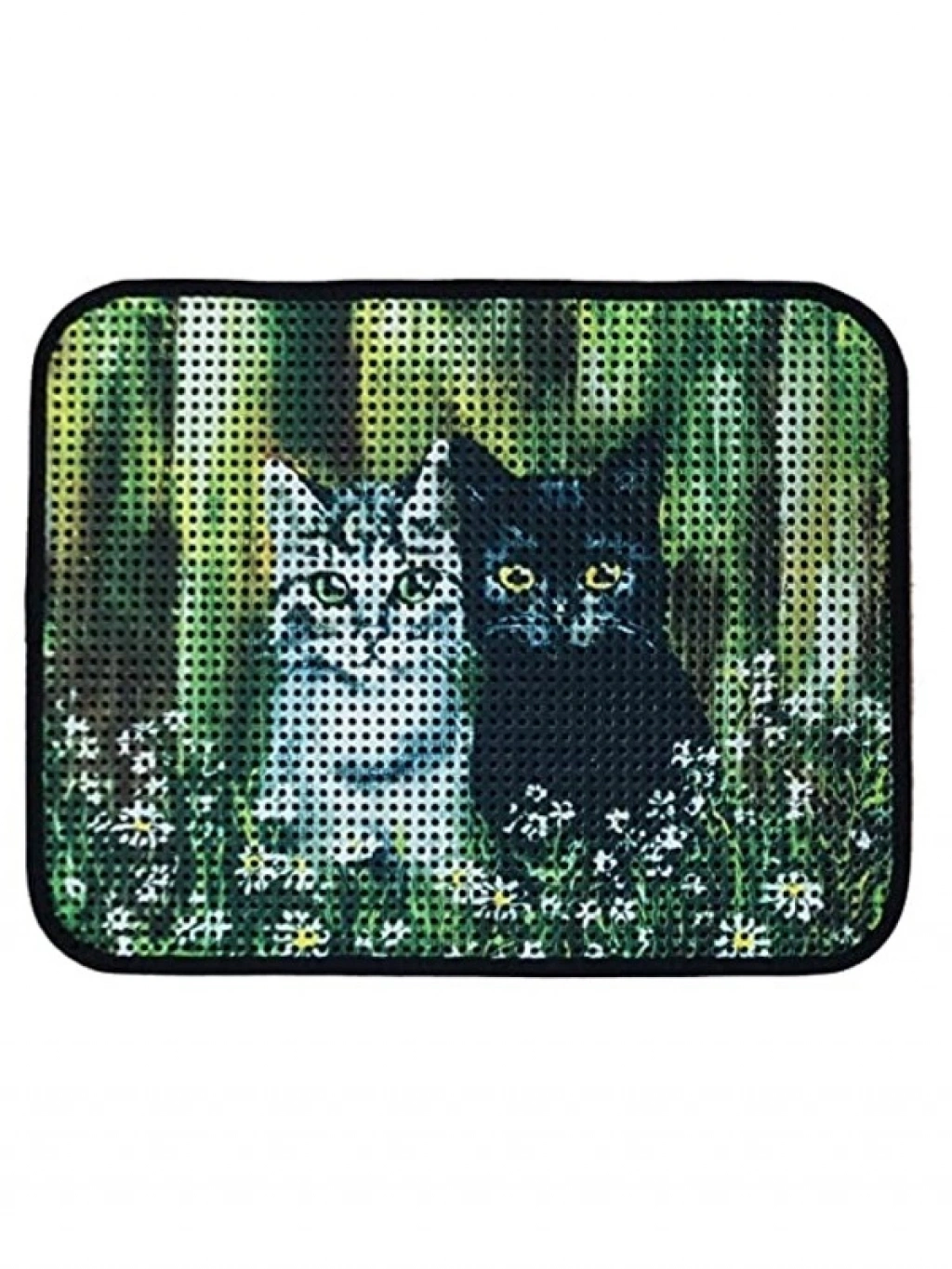 Elekli desenli kedi tuvalet önü paspası, 60x45 cm ölçülerindedir. Kedinizin tuvalet sonrası temizliğini sağlamak için ideal bir çözüm sunar. Dayanıklı malzemesi ve şık tasarımı ile hem işlevsel hem de dekoratif bir üründür.