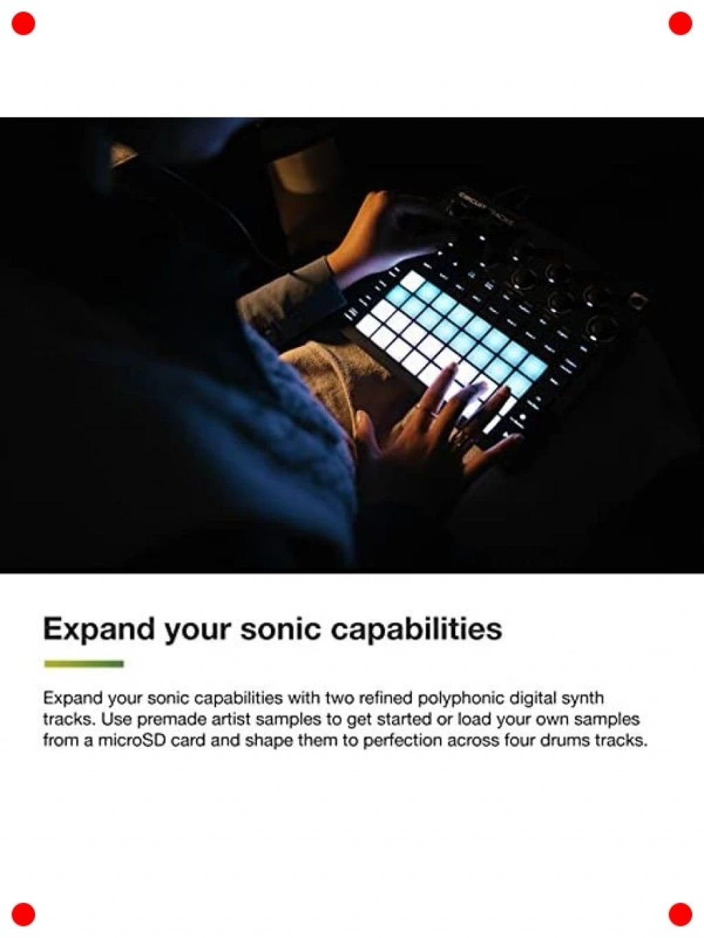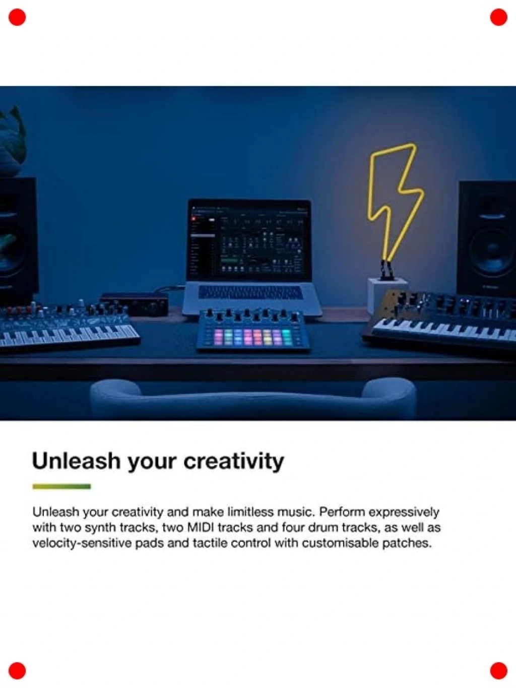 Elektronik müzik prodüksiyonu için özel olarak geliştirilen bu groovebox ile yaratıcılığınızı keşfedin. Güçlü synthesizer, MIDI ve davul parçaları sayesinde zengin ve katmanlı müzikler oluşturabilirsiniz. Sezgisel sequencer, karmaşık ritimler ve melodiler programlamanıza olanak tanır. İster stüdyoda ister yolda olun, kompakt tasarımı sayesinde her yerde ilhamınızı gerçeğe dönüştürmek için ideal bir araçtır. Elektronik müziğin dinamik dünyasına adım atmak veya mevcut kurulumunuzu genişletmek için mükemmel bir seçimdir, size sınırsız yaratım özgürlüğü sunar.
