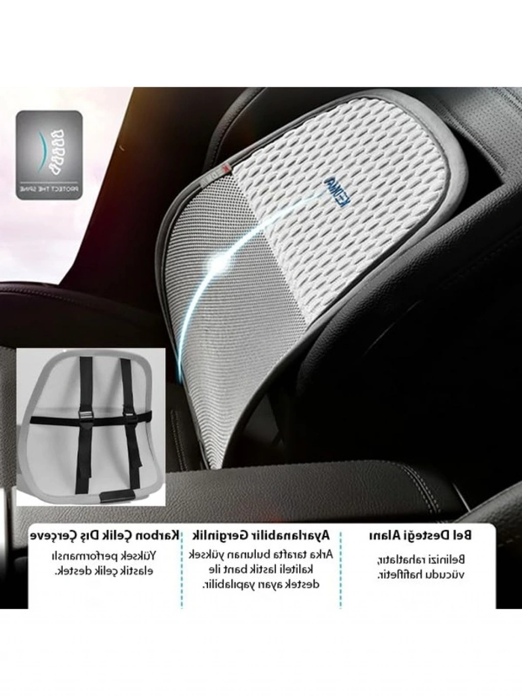 Siyah renkli ergonomik bel destek minderi, hem araba hem de ofis kullanımı için tasarlanmıştır. Sırt destek yastığı, uzun süreli oturumlarda bel sağlığınızı korumanıza yardımcı olur.